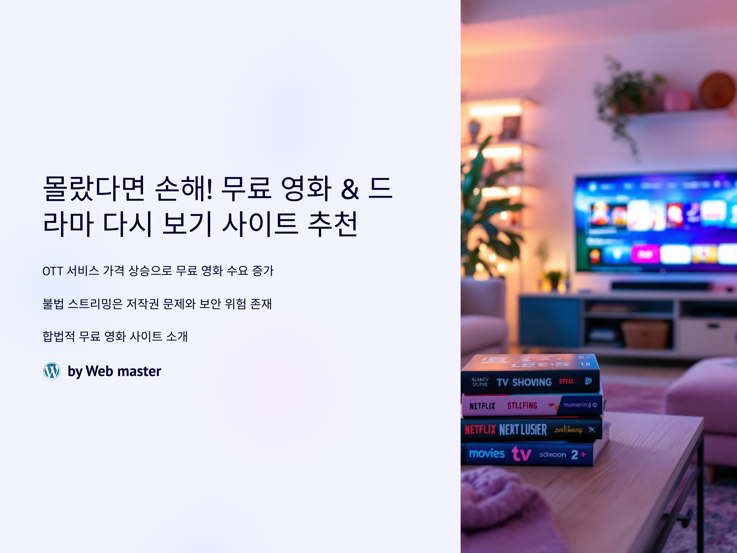 OTT 서비스의 가격이 점점 오르면서, 많은 사람들이 무료로 영화를 보고 싶은 욕구가 커지고 있습니다. 하지만 불법 스트리밍 사이트는 저작권 문제와 보안 위험이 따르기 때문에 주의가 필요합니다. 이번 포스팅에서는 합법적으로 무료로 영화를 볼 수 있는 안전한 사이트들을 소개해 드리겠습니다. 최신 영화부터 인기 드라마까지, 다양한 콘텐츠를 제공하는 무료 스트리밍 사이트를 확인하세요!