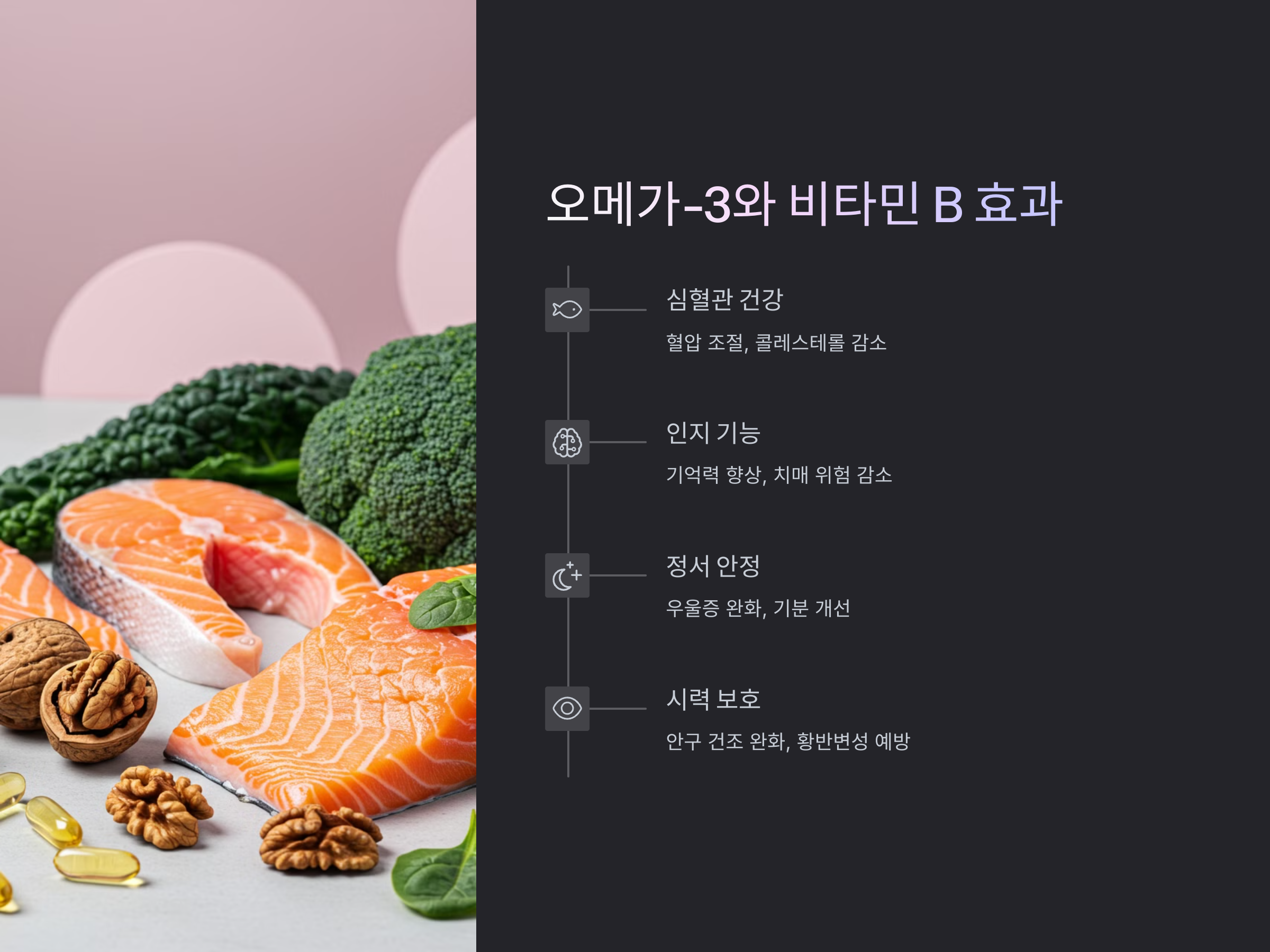 - 비타민 B군: 신경계와 뇌 건강을 유지하는 데 중요합니다. 비타민 B군은 기억력 저하를 예방하고 기분을 안정시키는 데 도움을 줄 수 있습니다.