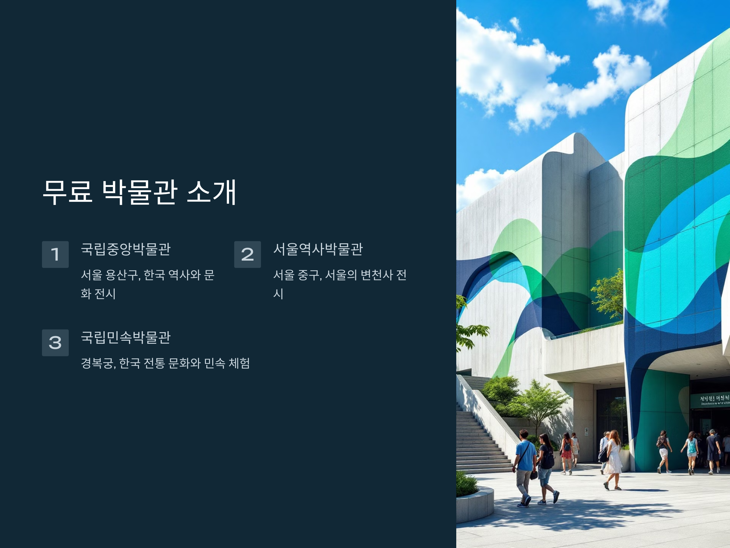 한국에는 무료로 개방되는 박물관들이 다수 존재합니다. 그 중에서도 특히 눈에 띄는 박물관들이 있어, 입장료 부담 없이 풍부한 문화유산을 즐길 수 있습니다.