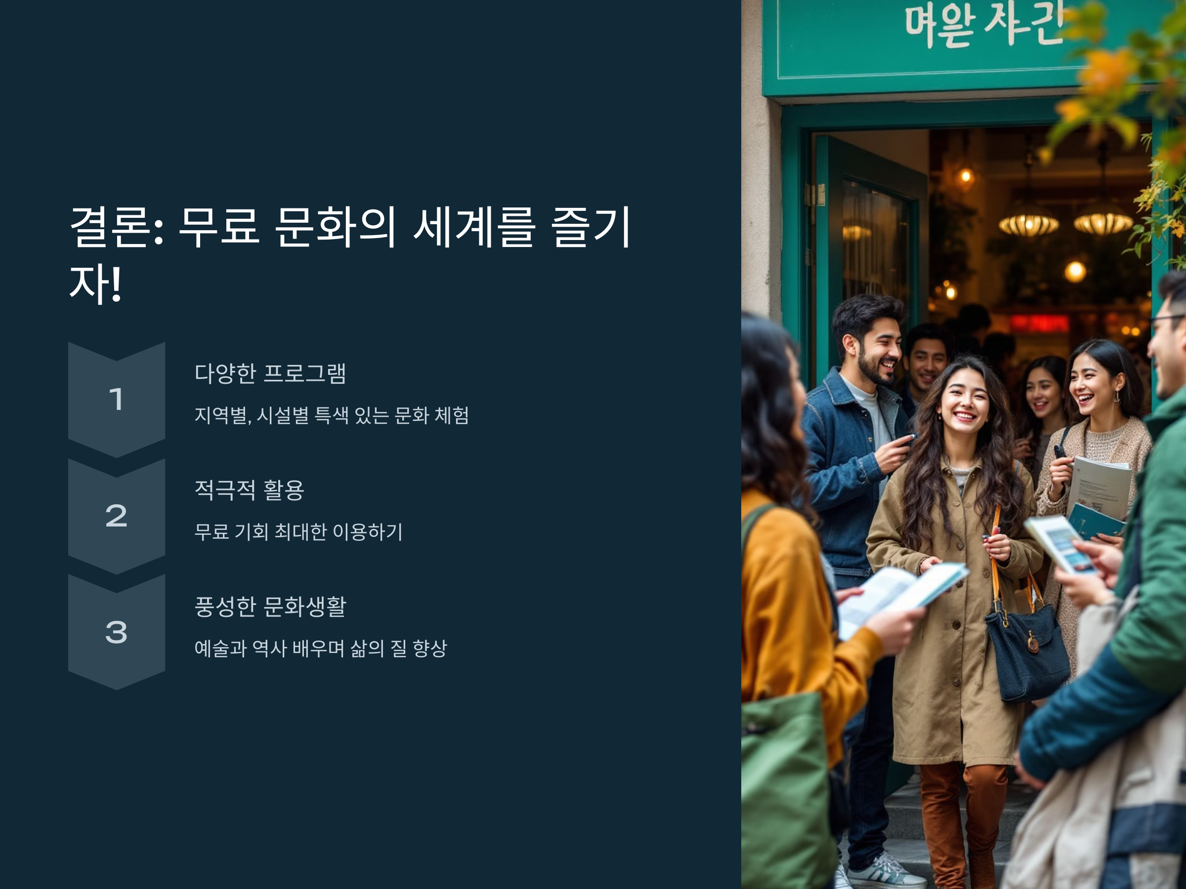 문화와 예술을 좋아하는 분들에게 이 정보는 유용할 것입니다. 특히, 예술과 역사를 접할 수 있는 박물관과 문화센터는 교육적이고 감성적인 경험을 제공합니다. 또한, 이러한 장소들은 종종 지역 사회와의 소통의 장으로 활용되기도 합니다. 여러분이 방문할 수 있는 무료 장소들에 대해 한 번 알아보겠습니다.