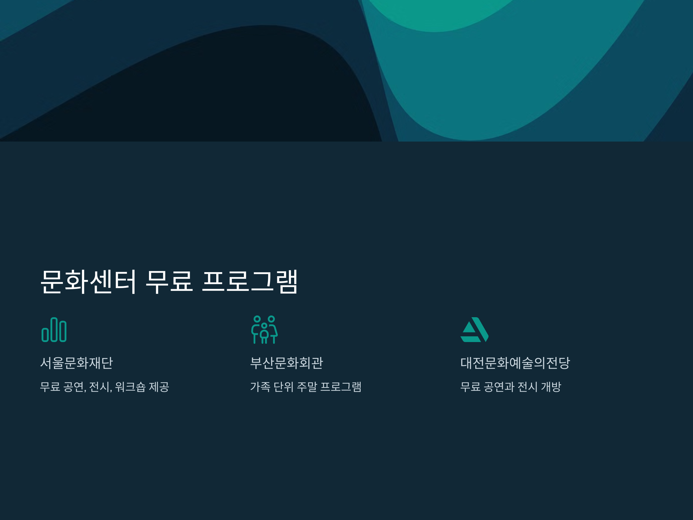 박물관 외에도 많은 문화센터에서 무료로 진행되는 다양한 프로그램이 있습니다. 여기서는 대표적인 문화센터를 소개하고, 그곳에서 제공하는 무료 프로그램에 대해 알아보겠습니다.
