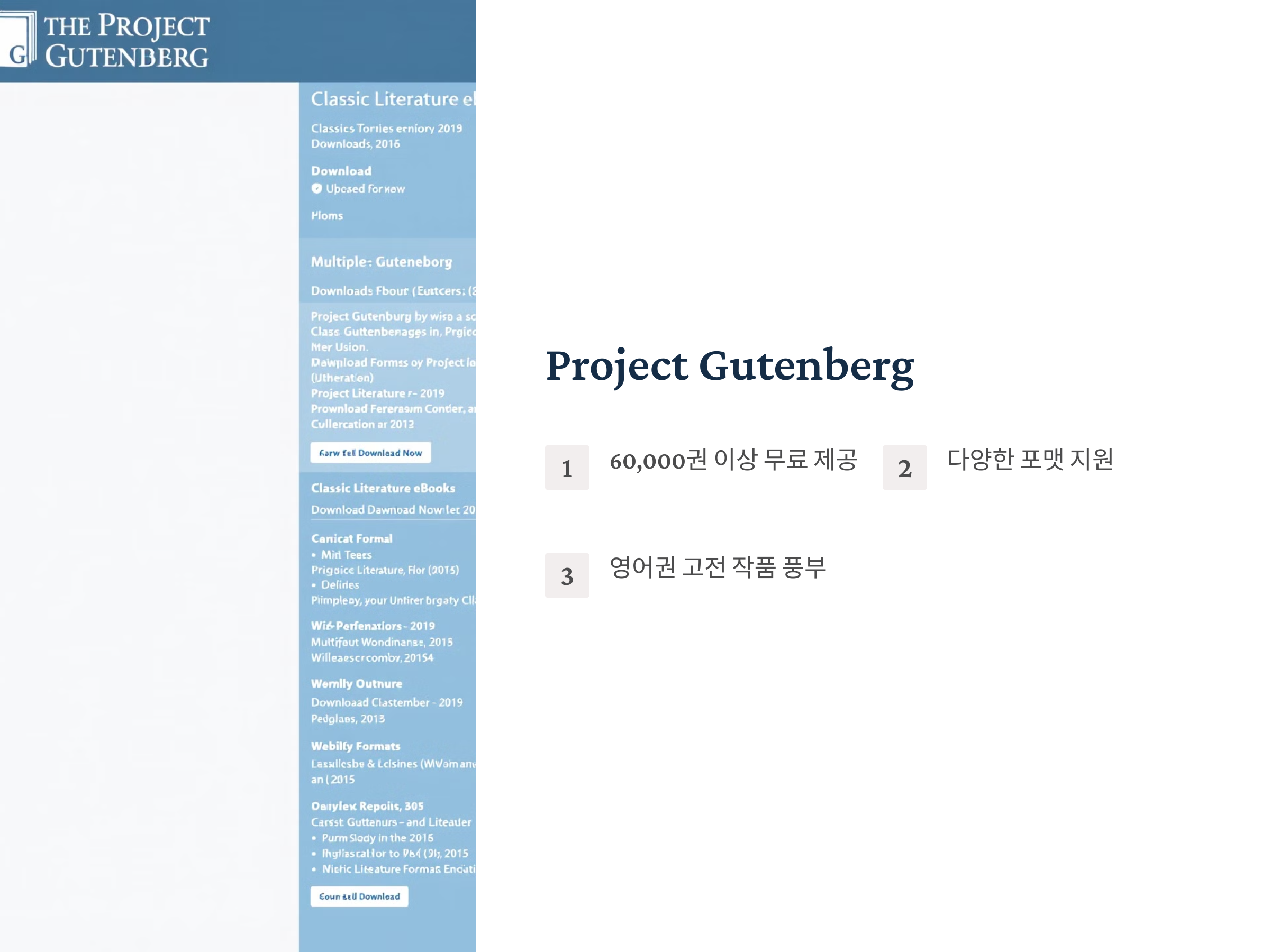 - 공공 도메인에 있는 고전 문학 작품 많음
