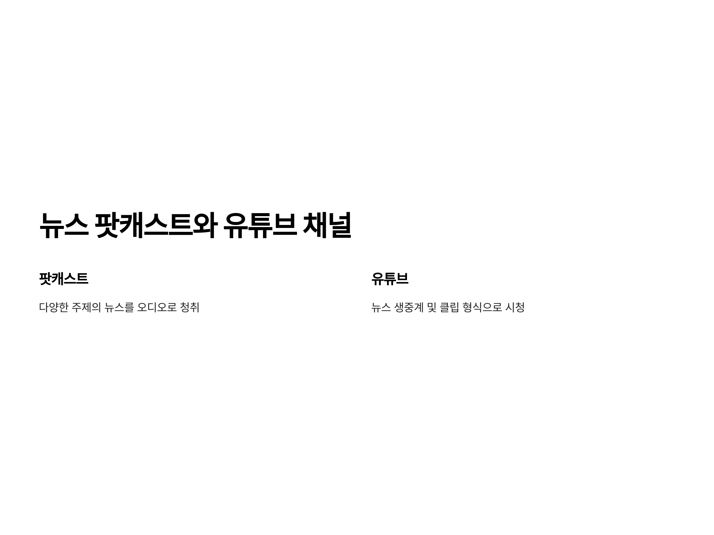 - 팟캐스트를 통해 다양한 주제의 뉴스를 빠르고 간편하게 들을 수 있습니다.