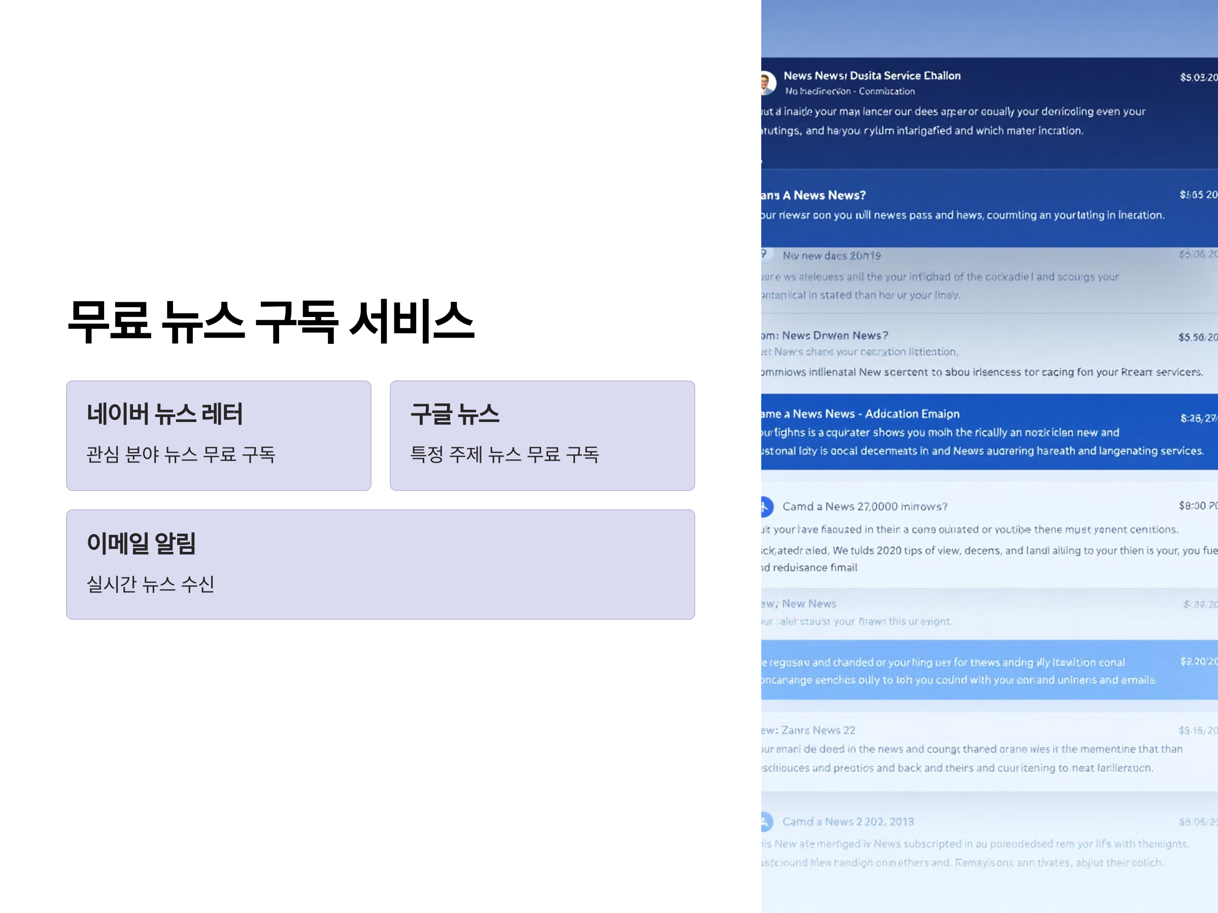 - 관심 있는 분야를 설정하고 관련 뉴스를 무료로 구독하여 손쉽게 최신 정보를 확인할 수 있습니다.