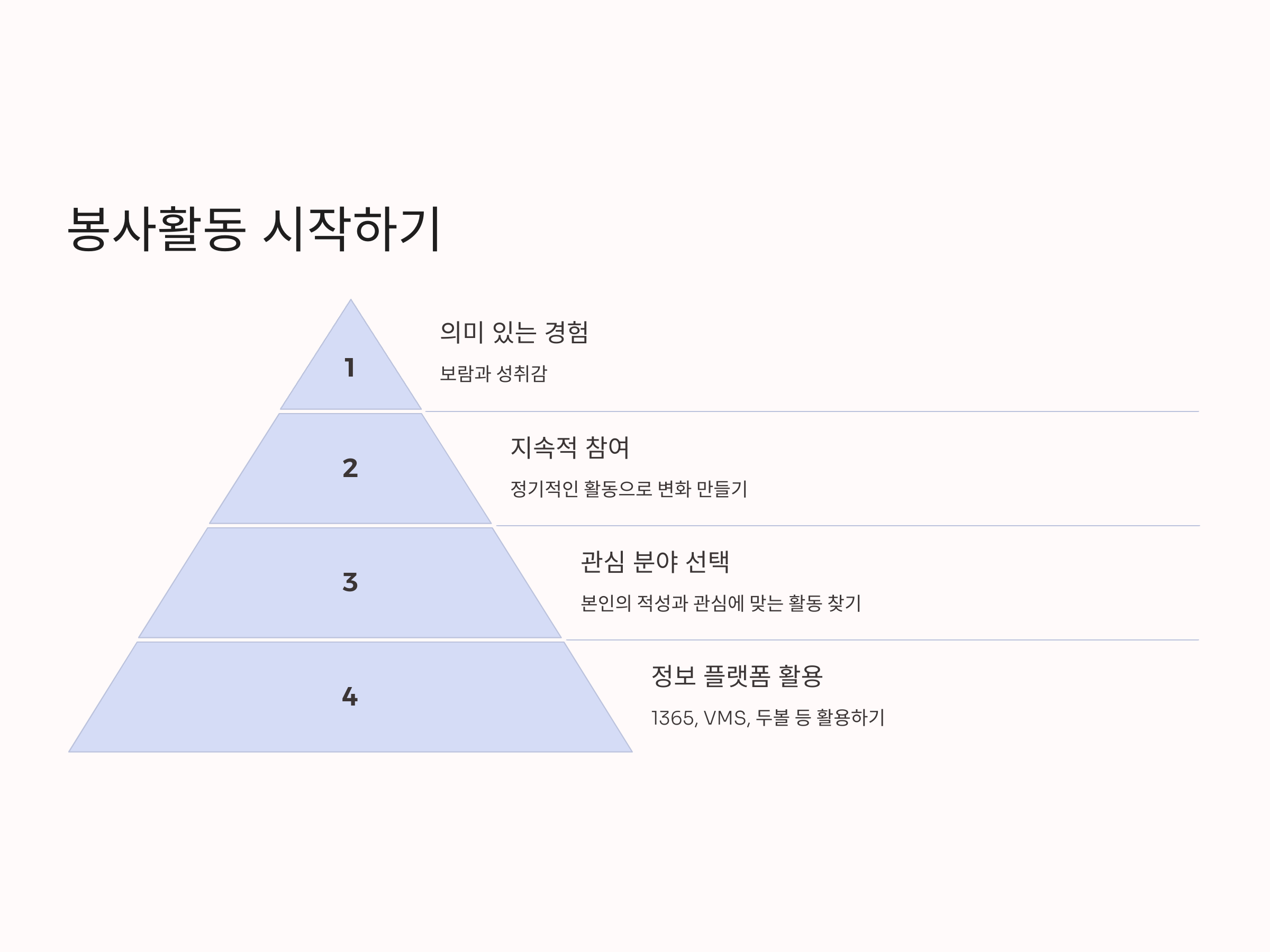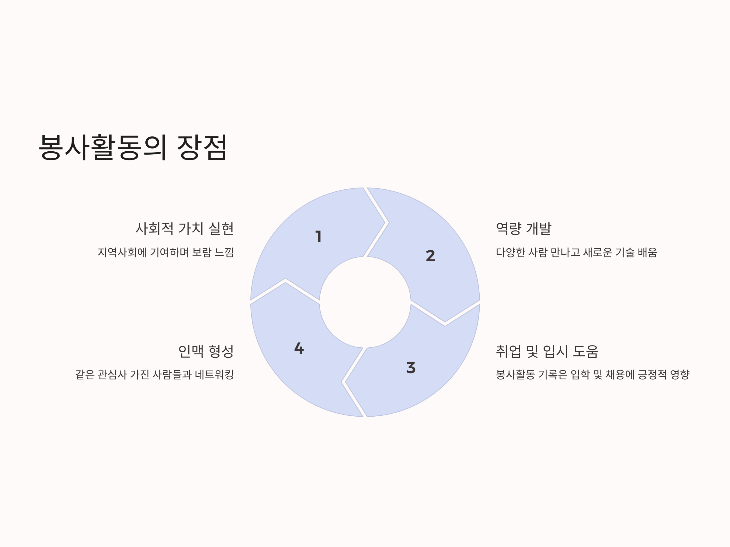 봉사활동은 단순한 선행을 넘어 자기 계발과 커리어에도 도움이 되는 활동입니다.