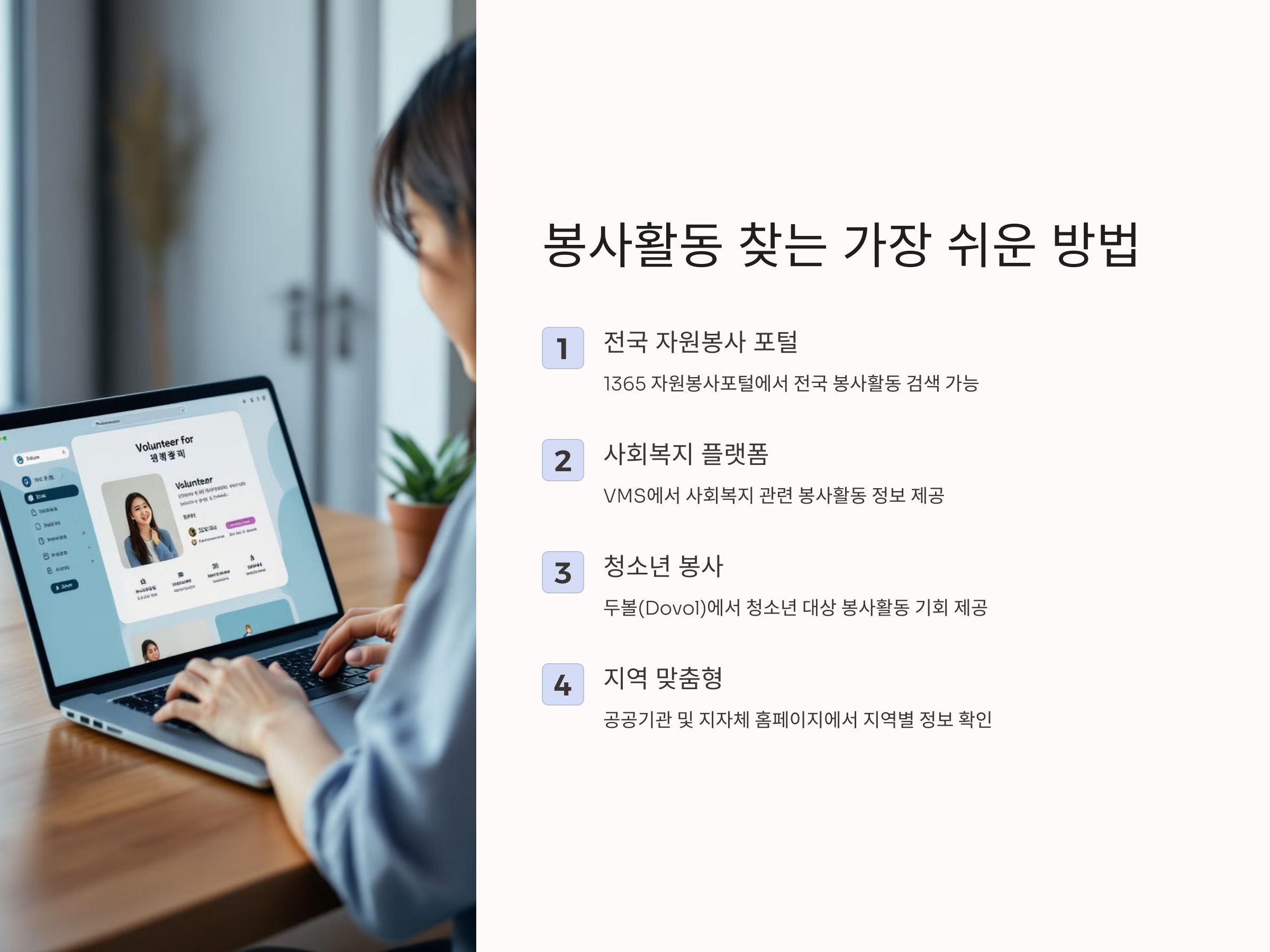 - 공공기관 및 지자체 홈페이지: 지역별 맞춤형 봉사활동 정보 확인 가능