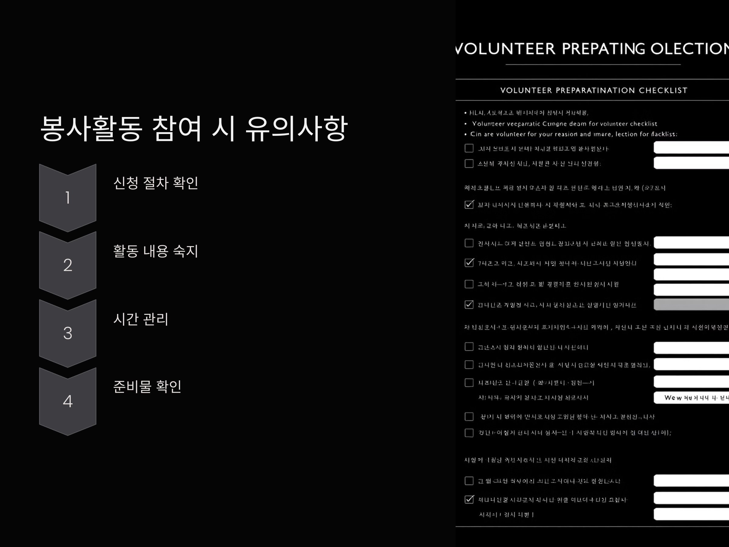 - 활동 내용 숙지: 봉사활동의 구체적인 내용과 요구사항을 충분히 이해하고 참여합니다.