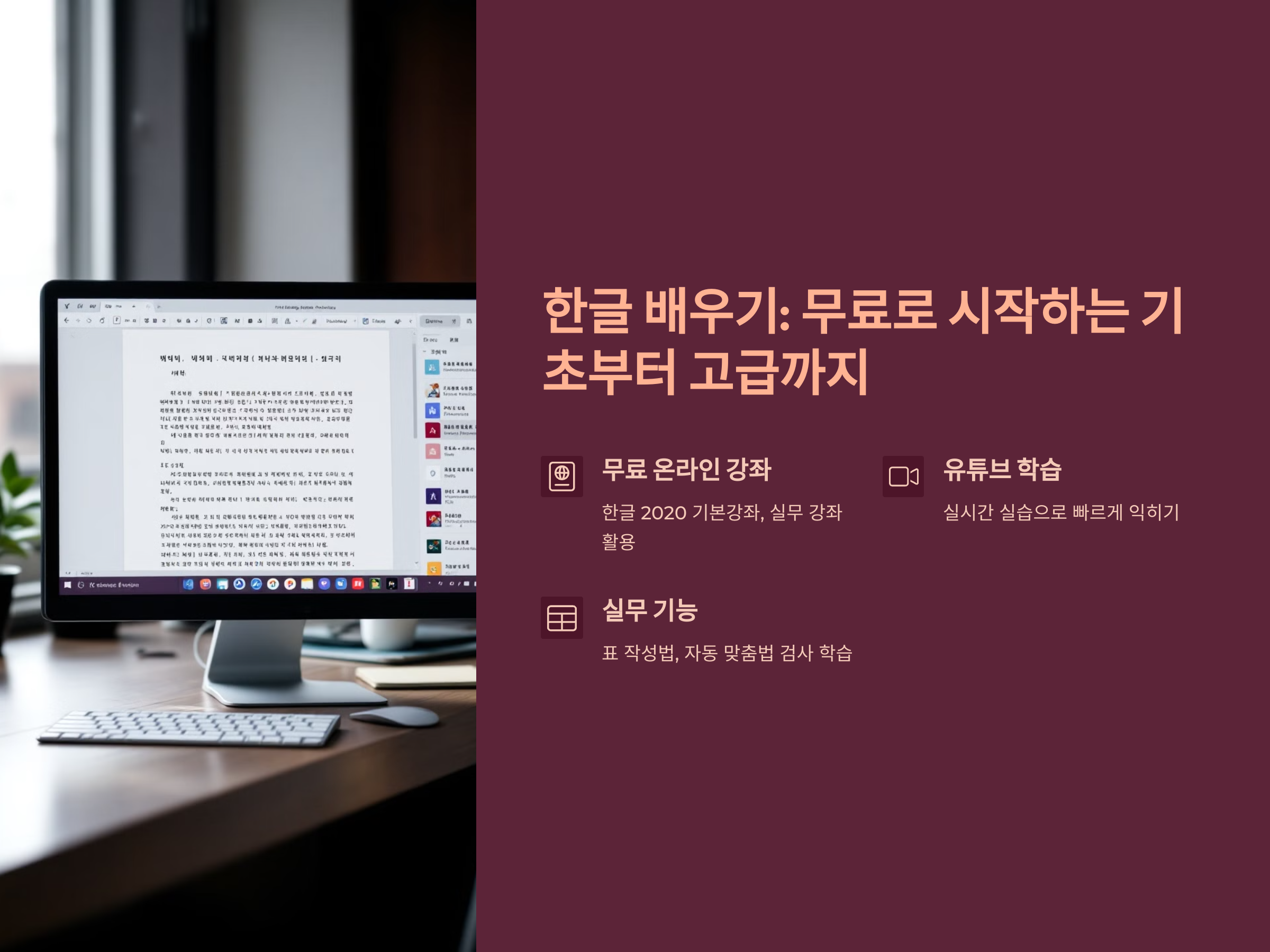 또한, 유튜브에는 한글 관련 학습 콘텐츠가 많기 때문에 실시간으로 다양한 실습을 따라 할 수 있습니다. 강의뿐만 아니라 실습 예시를 통해 실무에서 자주 쓰이는 기능을 빠르게 익힐 수 있습니다. 예를 들어, 문서 작성 시 자주 사용하는 표 작성법이나 자동 맞춤법 검사 기능 등을 무료로 배울 수 있습니다.