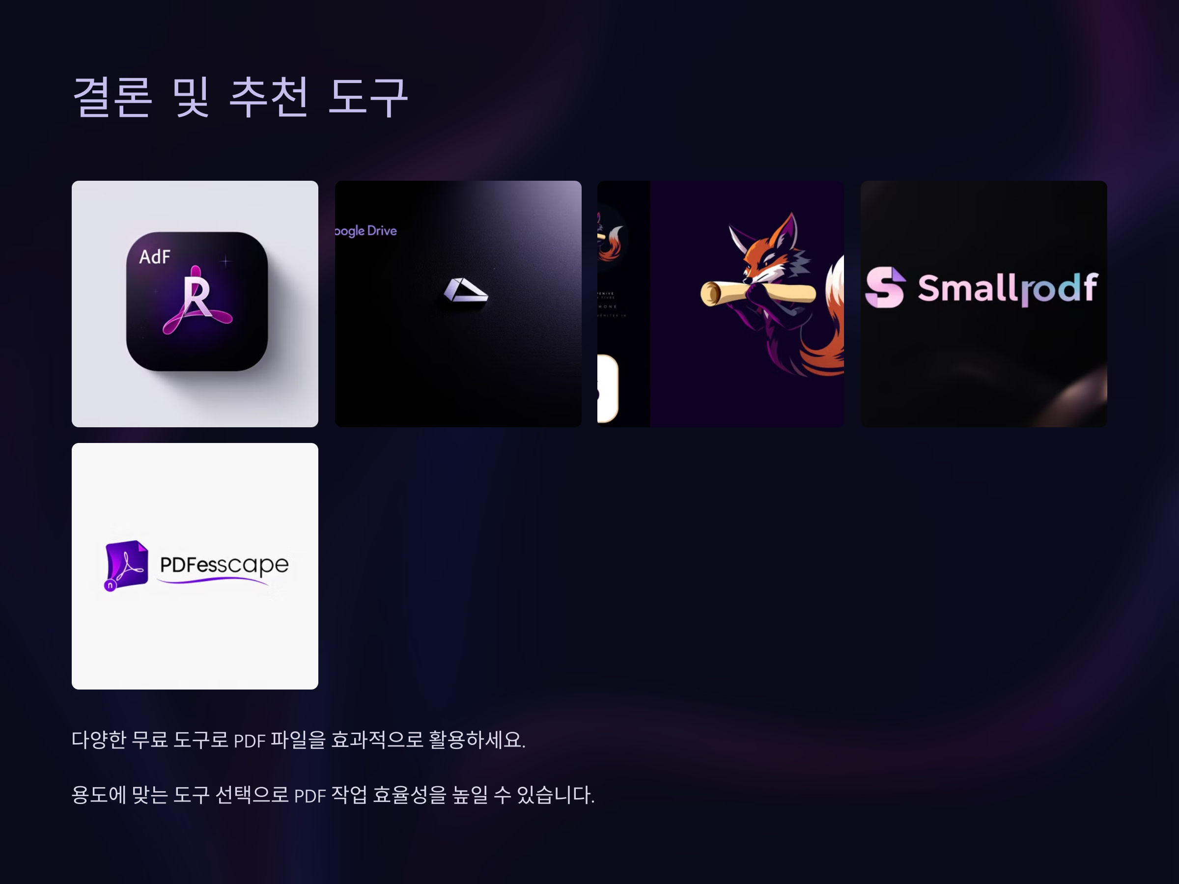 무료로 PDF 파일을 열고 활용하는 방법은 매우 다양합니다. Adobe Acrobat Reader와 Foxit Reader와 같은 소프트웨어를 사용하면 PDF 파일을 쉽게 열 수 있으며, Google Drive와 PDFescape와 같은 온라인 도구를 활용하면 설치 없이도 PDF를 열고 편집할 수 있습니다. 또한, Smallpdf와 PDF-XChange Editor와 같은 도구는 PDF 파일을 변환하고 편집하는 데 유용하게 사용될 수 있습니다. 보안 기능을 강화하고, 파일을 효율적으로 관리하는 방법도 소개했습니다. 이러한 도구들을 적절히 활용하면, PDF 파일을 보다 효과적으로 사용할 수 있습니다.