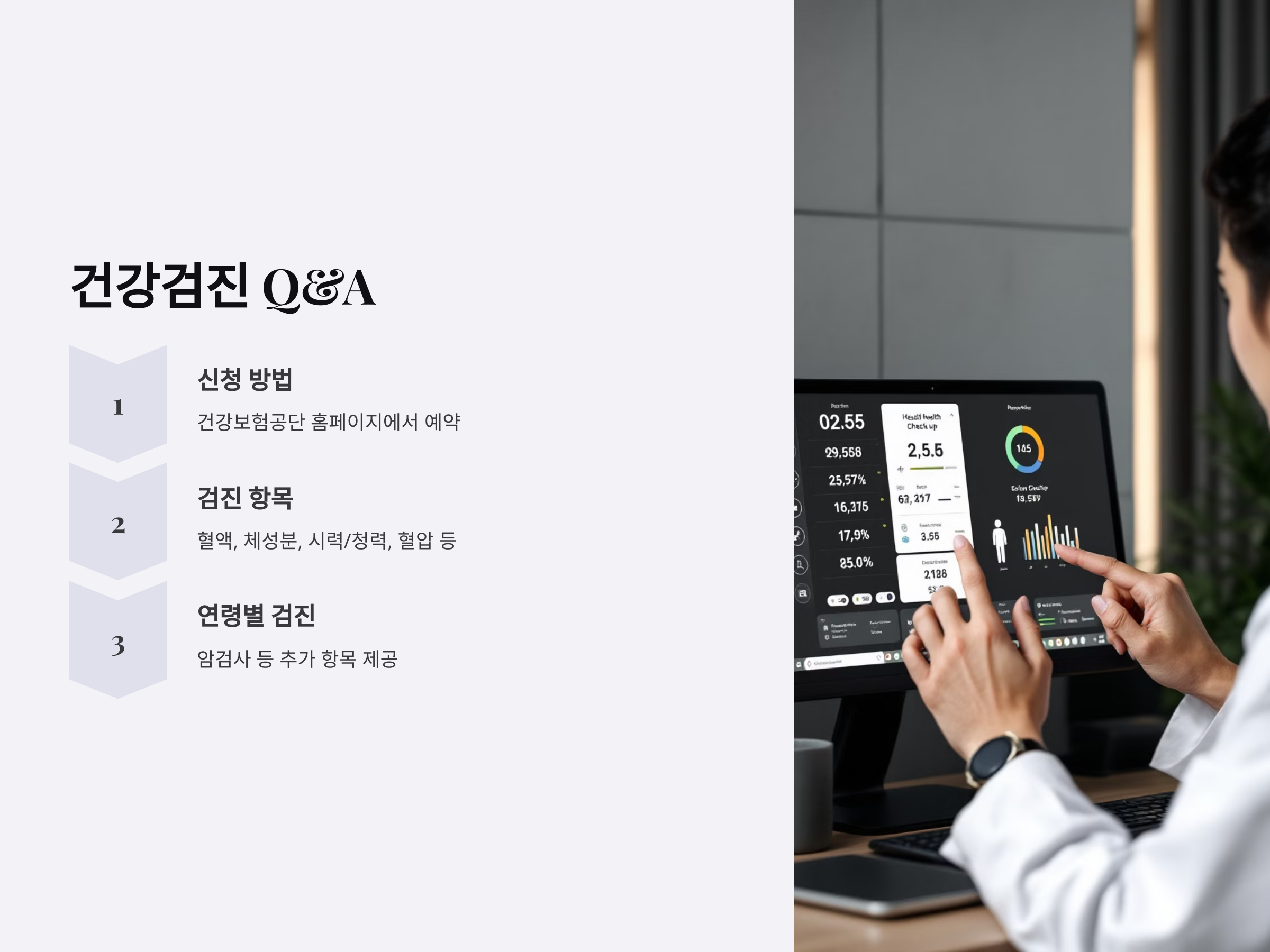 Q1: 국민건강보험공단에서 제공하는 건강검진은 어떻게 신청하나요?