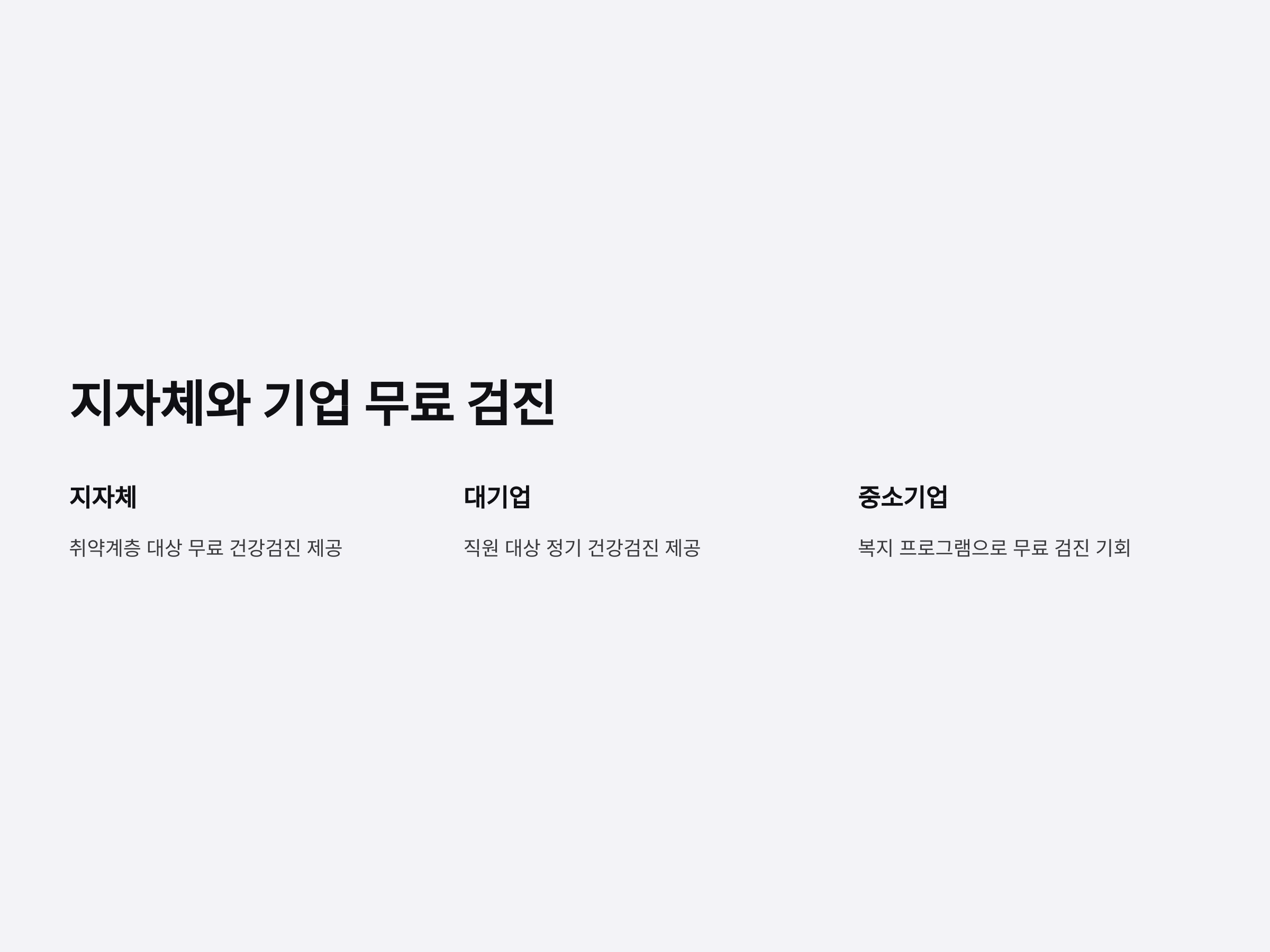 또한, 대기업과 중소기업에서는 직원들의 건강을 위해 정기적인 건강검진을 제공합니다. 특히 직원들에게는 대부분 비용을 부담하지 않고 검진을 받을 수 있는 기회가 주어집니다. 회사의 복지 프로그램에 따라 다르지만, 이를 활용하면 추가 비용 없이 검진을 받을 수 있습니다.