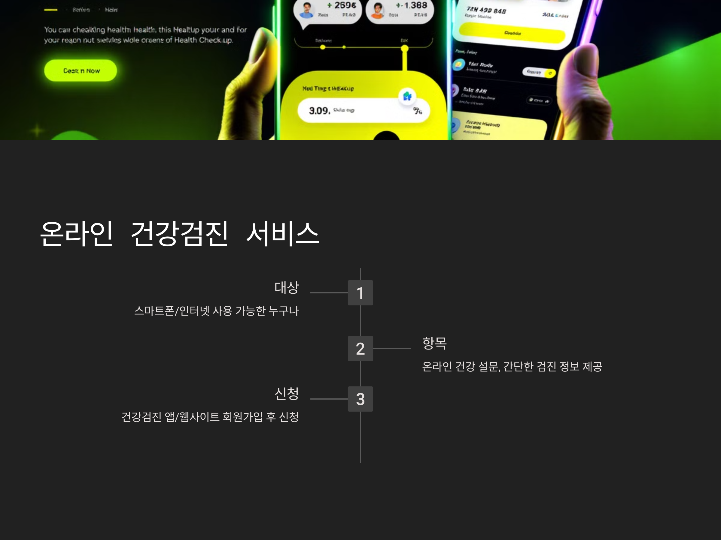 - 온라인으로 제공되는 건강 설문과 그에 따른 간단한 검진 정보 제공
