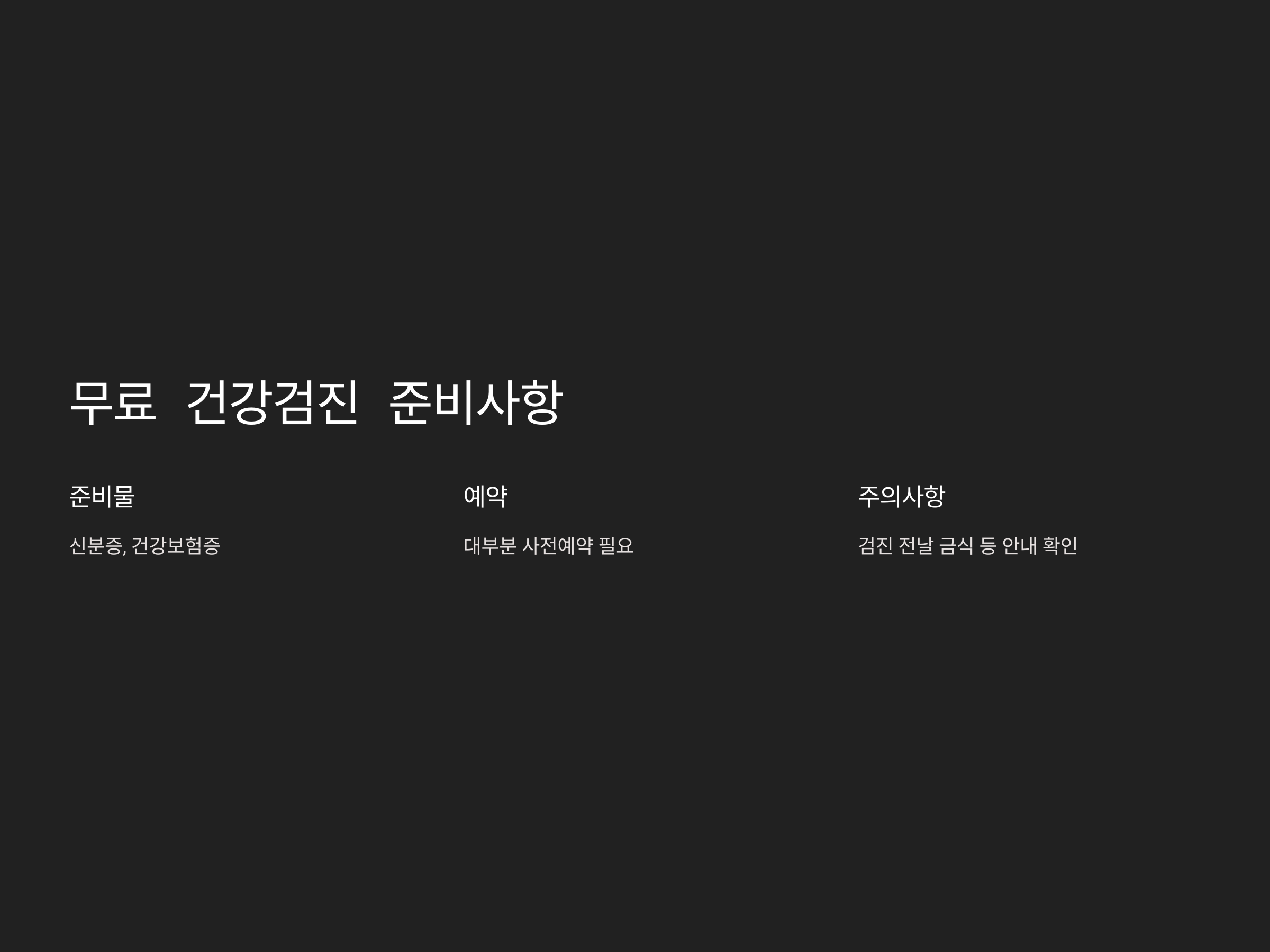 - 혈압, 혈당, 콜레스테롤 등 기본적인 건강 체크