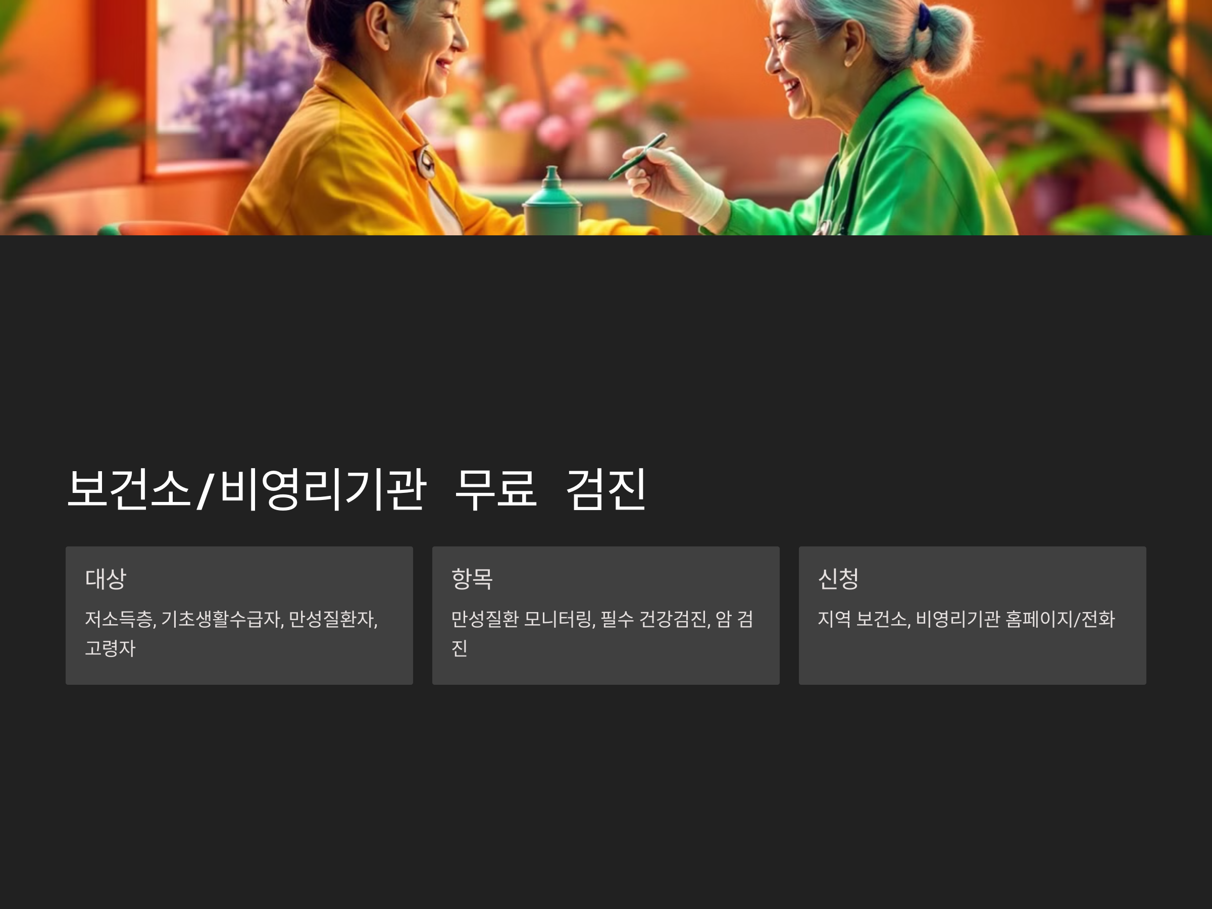 - 지역에 따라 제공되는 암검진, 치매 검진 등