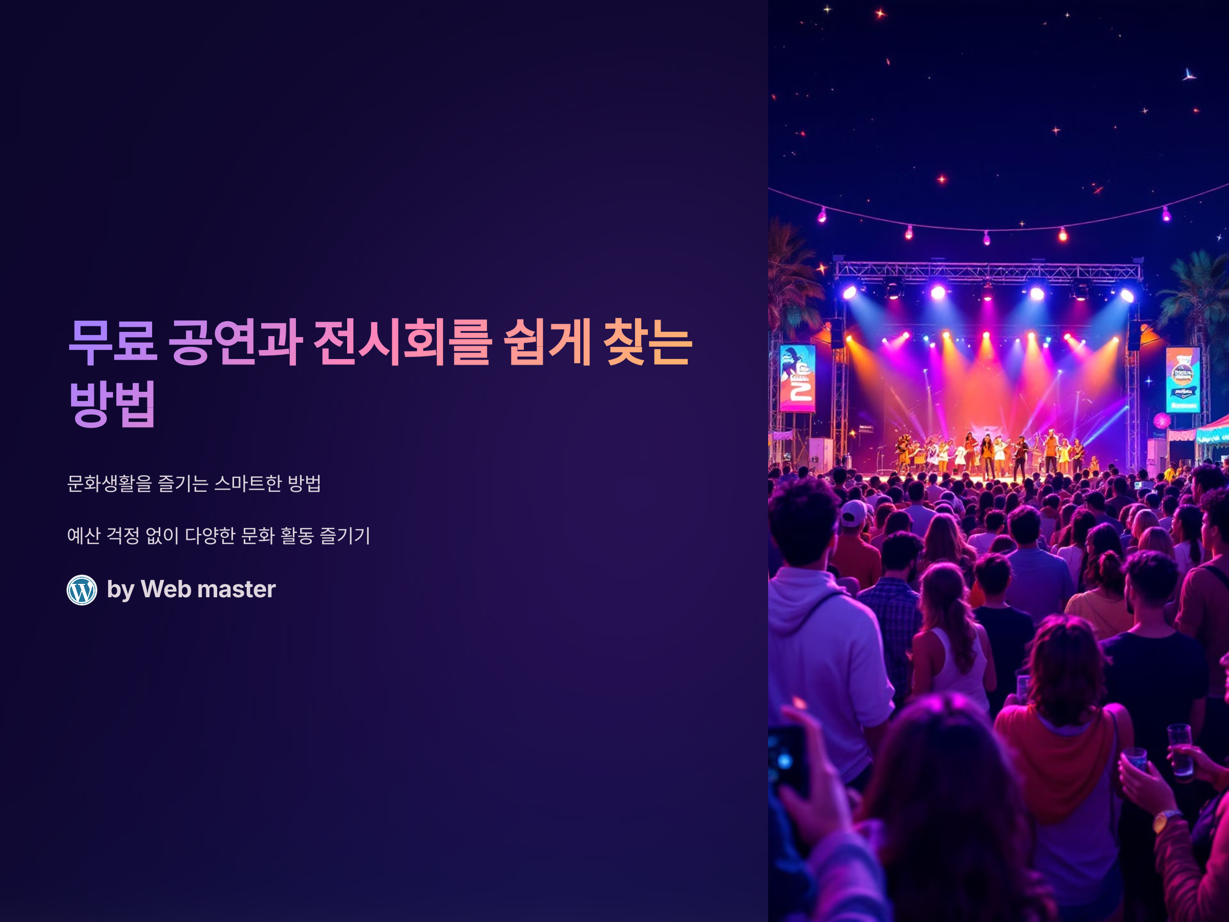 요즘 많은 사람들이 문화생활을 즐기고 싶어하지만, 예산에 맞는 활동을 찾기가 쉽지 않다고 느낍니다. 공연이나 전시회는 대부분 유료로 제공되기 때문에 비용 문제로 참여를 망설이는 경우가 많죠. 그런데 놀랍게도, 무료로 제공되는 다양한 공연과 전시회가 많다는 사실! 오늘은 그 무료 공연과 전시회를 쉽게 찾을 수 있는 방법들을 소개하려고 합니다. 예산을 걱정하지 말고 다양한 문화 활동을 즐겨보세요!