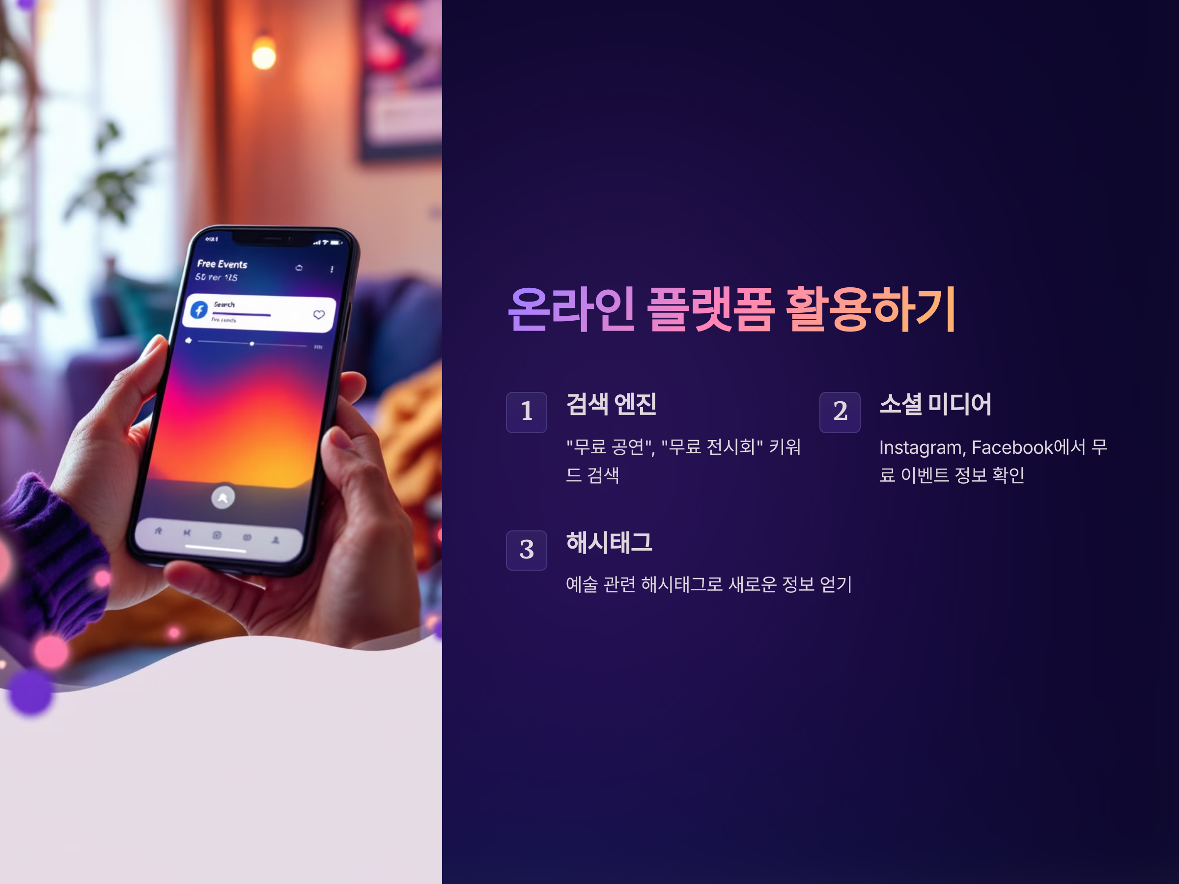 특히, 네이버, 구글과 같은 검색 엔진에서 "무료 공연", "무료 전시회"와 같은 키워드로 검색하면 전국 각지에서 열리는 무료 문화 행사를 쉽게 찾을 수 있습니다. 또한, Instagram, Facebook, YouTube 등의 소셜 미디어 플랫폼에서도 많은 무료 이벤트 정보를 확인할 수 있습니다. 예술과 문화 관련 해시태그를 통해 새로운 정보를 빠르게 얻을 수 있기 때문에 주기적으로 팔로우하고 체크하는 것이 중요합니다.