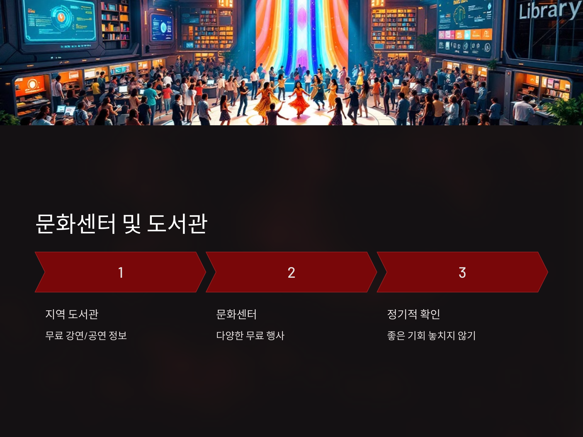 - 문화센터 및 도서관의 무료 강연 & 공연 정보 확인: 지역 도서관에서도 무료 행사를 자주 엽니다.