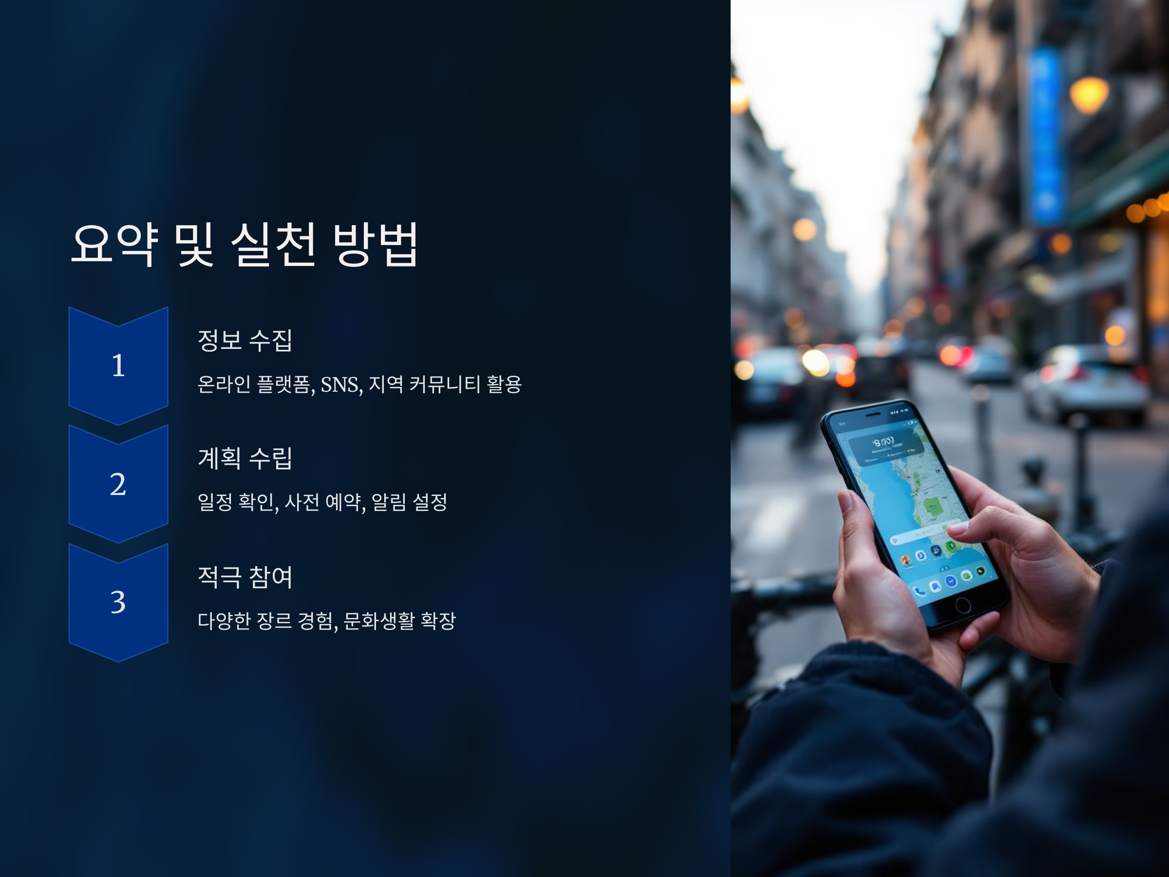 특히, Instagram에서는 해시태그를 활용해 지역별 또는 특정 장르의 무료 공연을 검색할 수 있습니다. 예를 들어, #서울무료전시, #무료공연 등으로 검색하면 해당 지역이나 이벤트에 대한 정보를 쉽게 찾을 수 있습니다. 또한, 커뮤니티 카페나 포털 사이트의 문화 관련 게시판에서 무료 행사 정보를 공유하는 경우도 많으므로 이러한 온라인 커뮤니티도 적극 활용하는 것이 좋습니다.