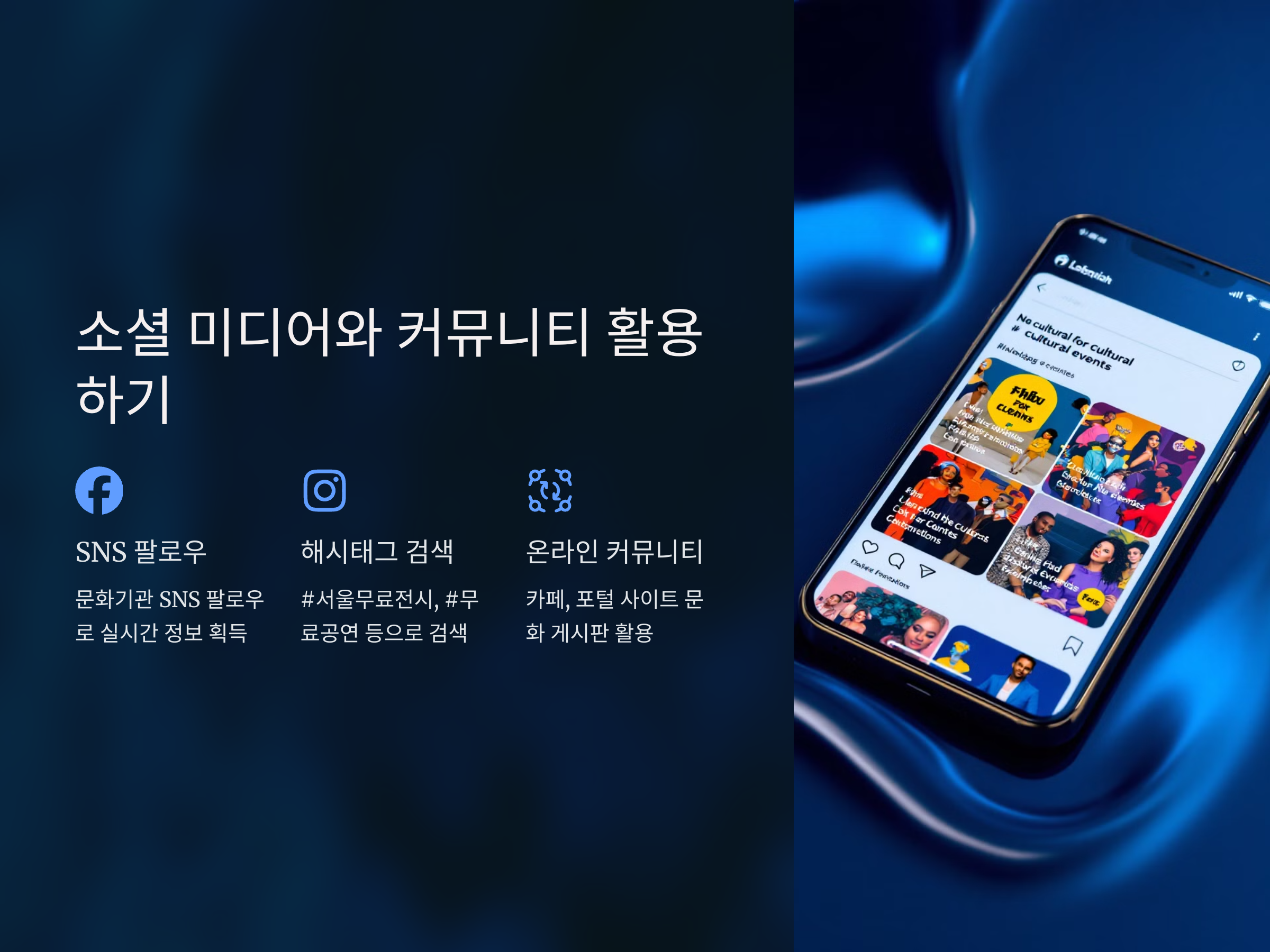 소셜 미디어는 무료 공연과 전시회 정보를 찾는 데 매우 유용한 도구입니다. 많은 문화기관들이 Facebook, Instagram, Twitter 등의 SNS를 통해 무료 행사 정보를 공유하고 있기 때문입니다. 문화예술 관련 페이지나 이벤트를 팔로우하면 실시간으로 유용한 정보를 받을 수 있습니다.