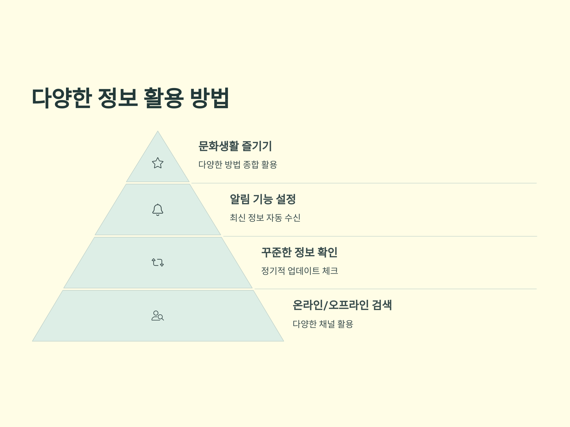 무료 공연과 전시회를 찾는 방법은 크게 온라인과 오프라인에서 두 가지 방법으로 나눌 수 있습니다. 각각의 방법은 다르게 접근해야 하지만, 효율적으로 활용하면 원하는 정보를 쉽게 얻을 수 있습니다. 이제부터 각 방법에 대해 자세히 설명해드릴게요.