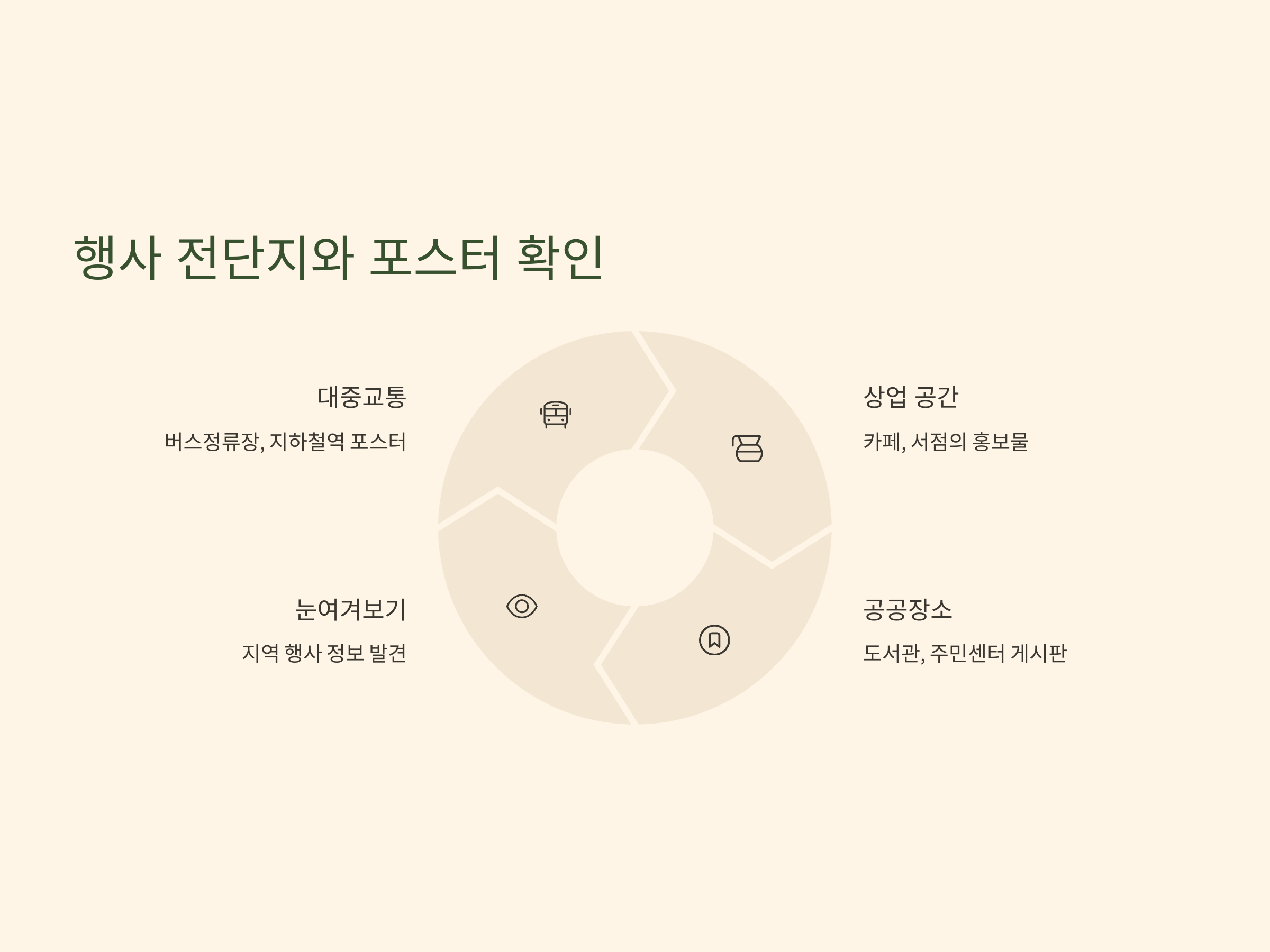 가끔 온라인 상에서 알지 못한 무료 공연이나 전시회는 거리나 공공장소에서 제공되는 전단지나 포스터를 통해 알게 되기도 합니다. 많은 공공기관이나 예술 단체들이 행사 일정을 알리기 위해 포스터나 전단지를 배포하곤 합니다. 특히 대중교통을 이용하거나, 상업적인 공간(예: 카페, 도서관 등)을 자주 방문하는 경우 이들 전단지를 쉽게 접할 수 있습니다. 전단지나 포스터를 눈여겨 보면서 지역 행사에 대한 정보를 얻을 수 있습니다.