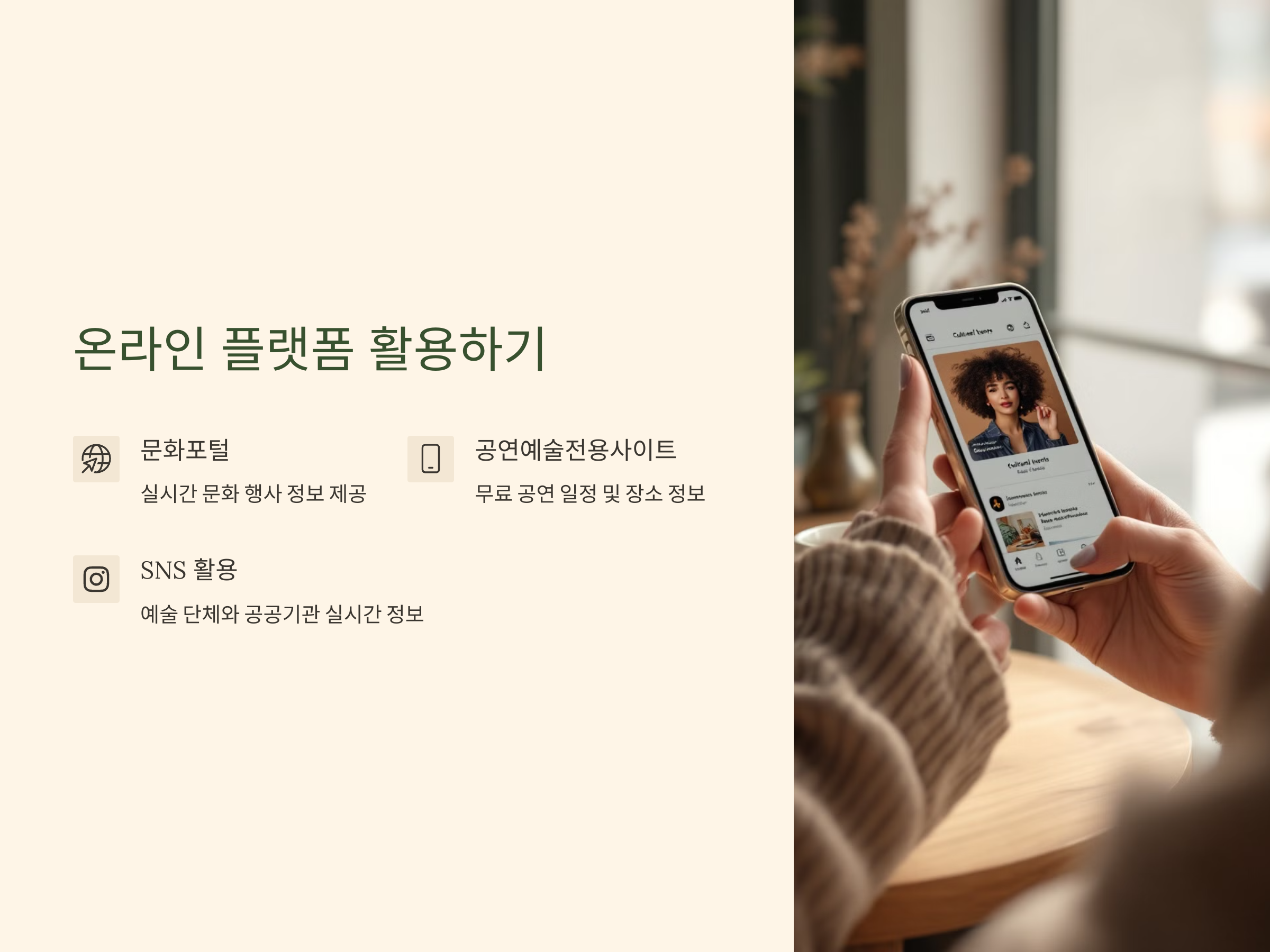 무료 공연과 전시회 정보를 찾는 가장 쉬운 방법은 온라인 플랫폼을 활용하는 것입니다. 다양한 웹사이트와 앱에서 실시간으로 문화 행사 정보를 제공하고 있으며, 지역별로도 정보를 필터링할 수 있어 매우 유용합니다. 대표적인 예로 '문화포털'과 '공연예술전용사이트' 등이 있으며, 이들 사이트에서는 무료로 진행되는 공연이나 전시회의 일정 및 장소 정보를 손쉽게 얻을 수 있습니다. 또한 SNS를 통해 예술 단체나 공공기관이 제공하는 행사 정보도 실시간으로 확인할 수 있습니다.