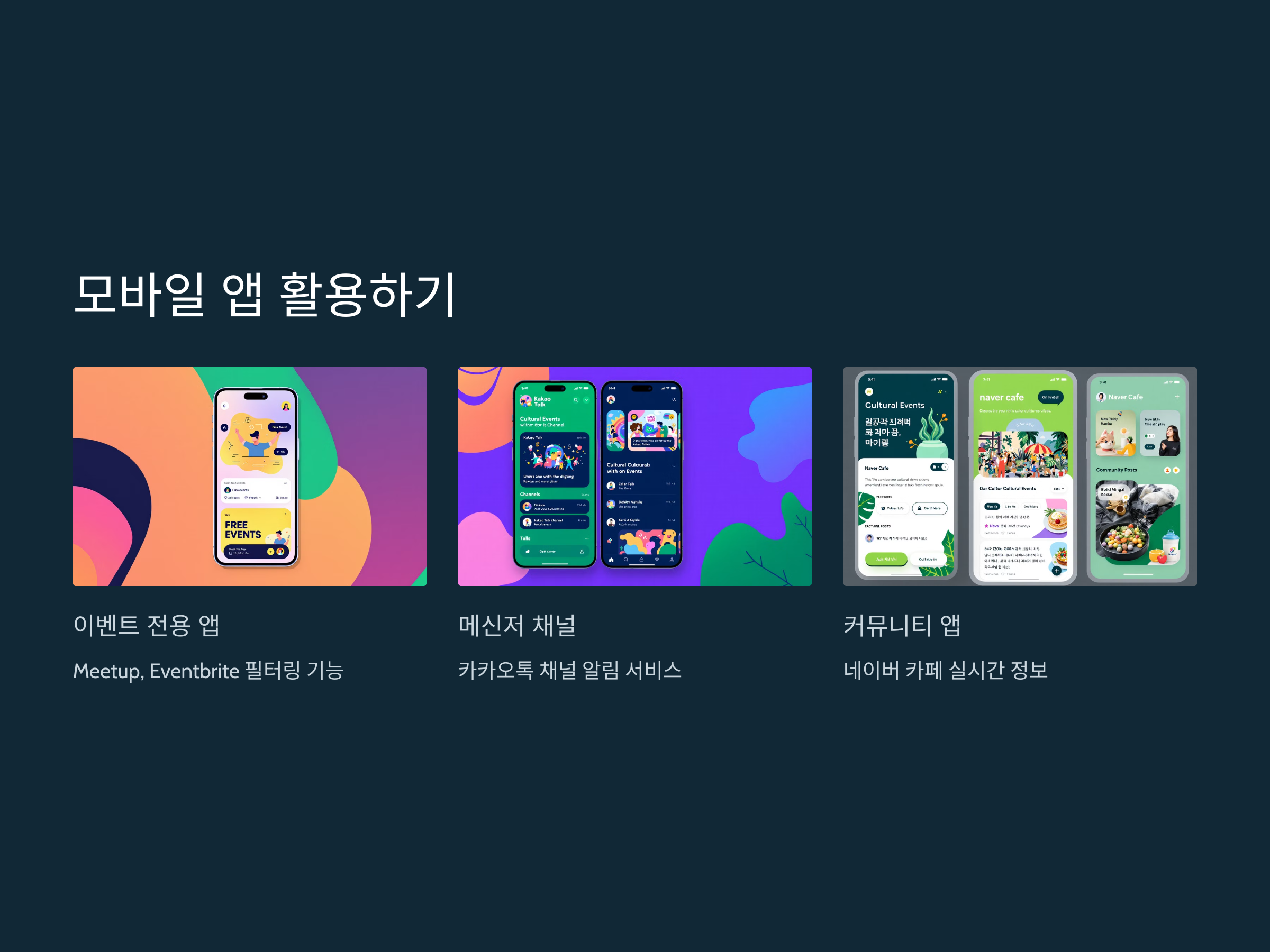 이 외에도 모바일 앱을 통해 지역별, 날짜별로 무료 이벤트를 손쉽게 찾을 수 있는 기능을 제공하는 앱들이 많이 있습니다. 예를 들어, Meetup이나 Eventbrite와 같은 앱에서는 무료 이벤트를 필터링하여 찾아볼 수 있어, 보다 쉽게 관심 있는 행사에 참여할 수 있습니다.