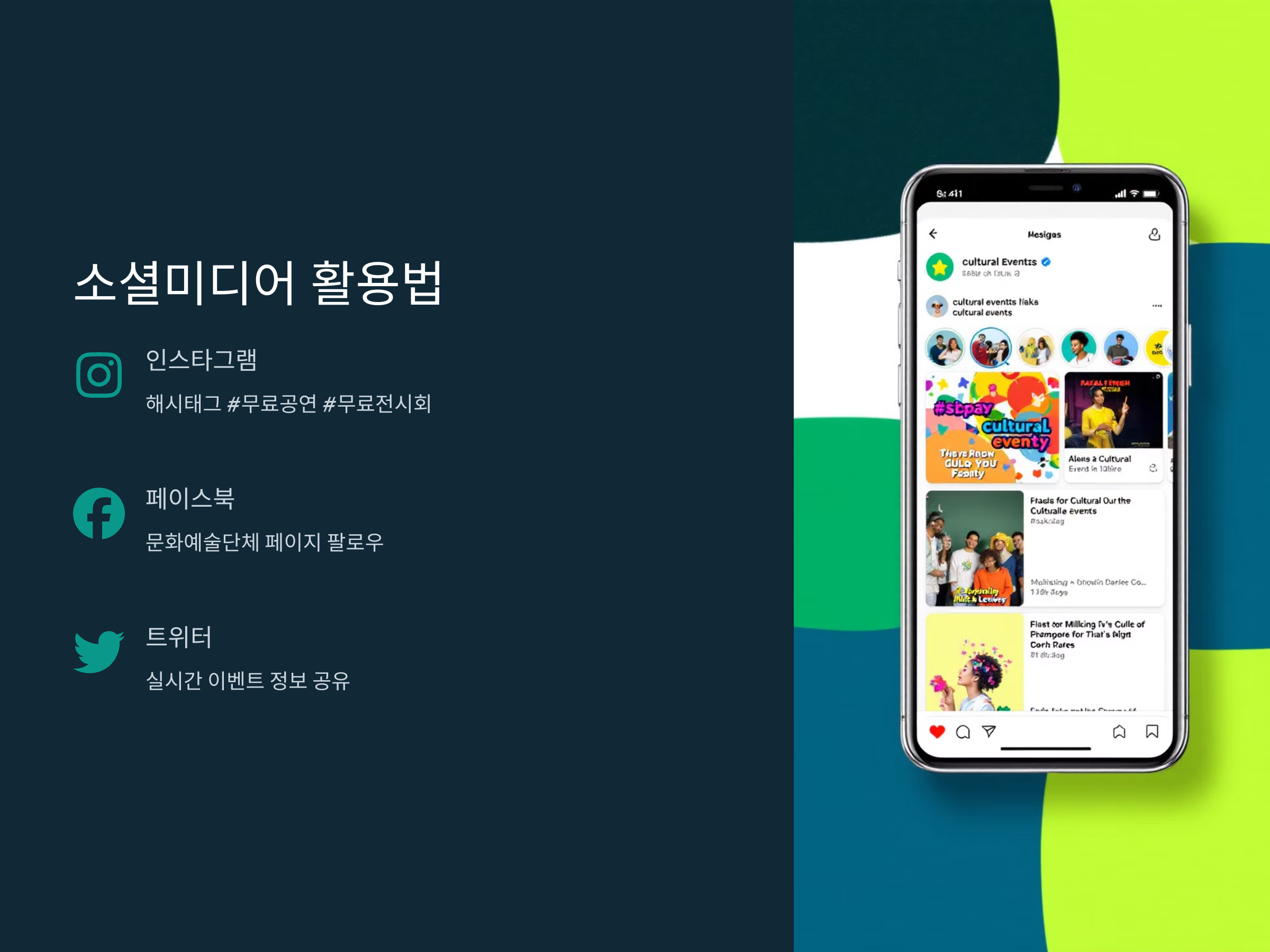 소셜미디어도 무료 공연과 전시회를 찾을 수 있는 훌륭한 방법입니다. 특히 인스타그램, 페이스북, 트위터 등에서는 문화 관련 계정들이 다양한 이벤트 정보를 실시간으로 공유합니다. 특히 지역별로 열리는 무료 문화 행사에 관한 정보를 실시간으로 제공하는 페이지들이 많습니다. 예를 들어, 서울문화재단의 인스타그램 계정이나 문화예술단체의 페이스북 페이지는 무료 공연이나 전시회 정보를 놓치지 않고 찾아볼 수 있는 좋은 방법입니다.