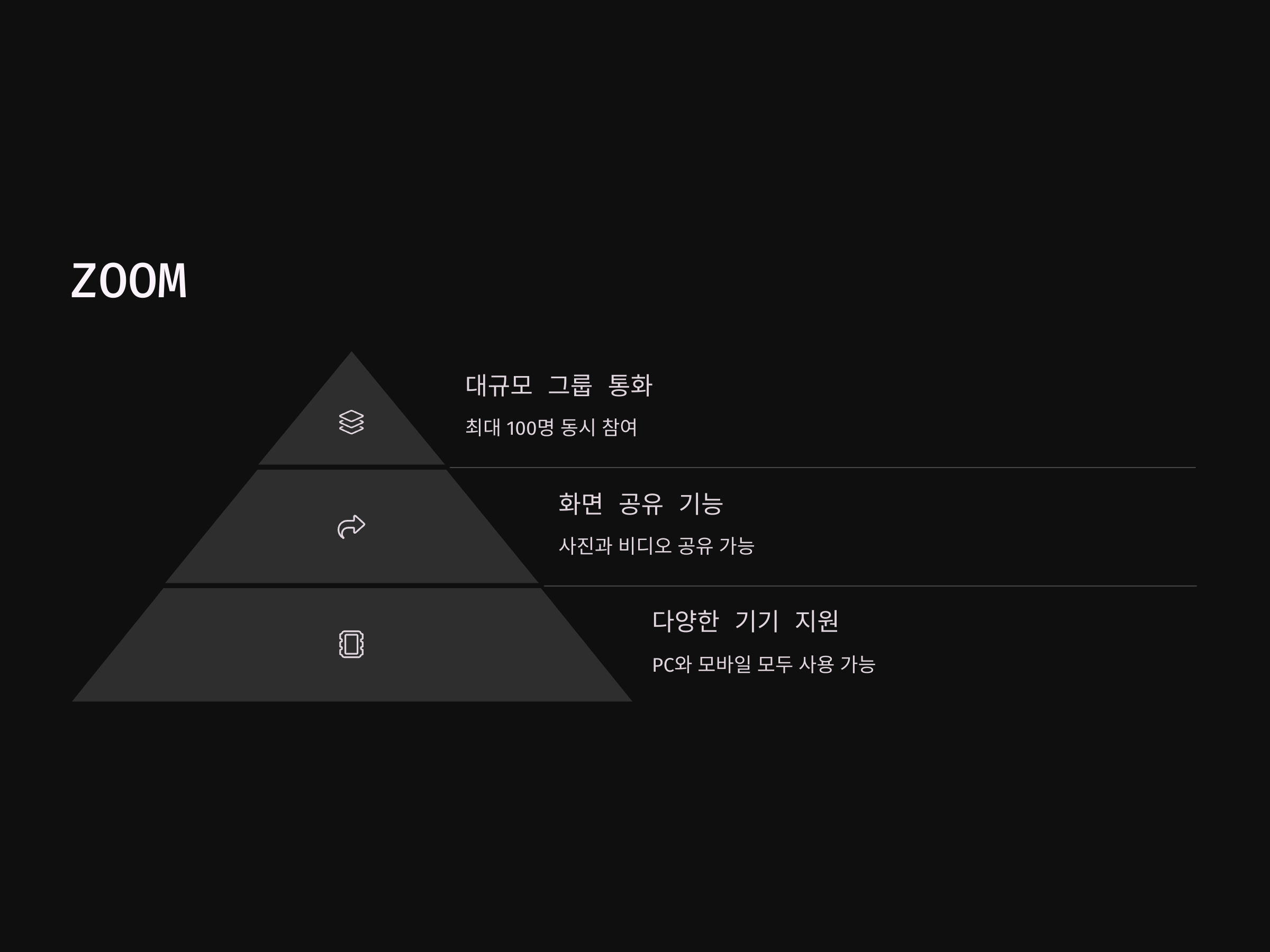 ZOOM은 원래 기업 회의용으로 사용되었으나 최근에는 개인적인 용도로도 많이 사용됩니다. 특히, 큰 그룹 영상 통화를 지원하며 최대 100명까지 동시에 영상 통화를 할 수 있습니다. 가족 모임이나 친척들과의 모임에 유용하게 활용할 수 있습니다. ZOOM은 화면 공유 기능도 지원하여, 사진이나 비디오를 공유하며 소통할 수 있습니다. 또한, ZOOM은 PC와 모바일 모두에서 사용할 수 있어 다양한 환경에서도 유용하게 활용할 수 있습니다.