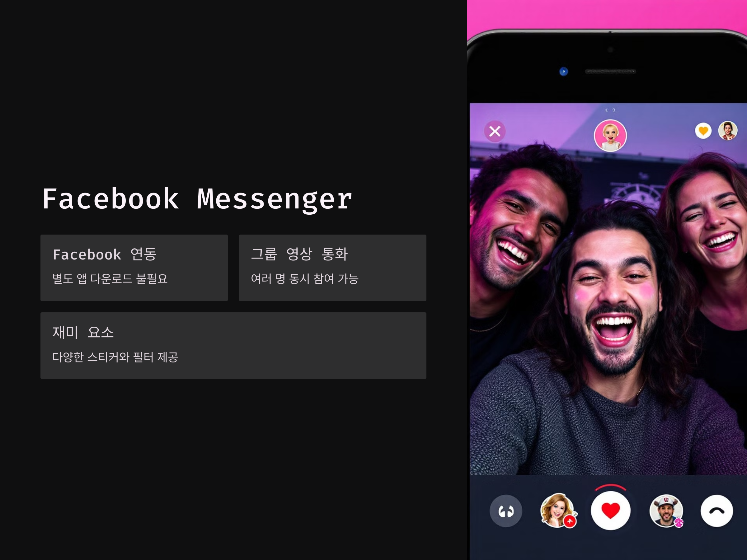 Facebook Messenger는 Facebook 사용자라면 별도의 앱을 다운로드하지 않고 바로 사용할 수 있는 영상 통화 앱입니다. Messenger는 친구와의 1:1 영상 통화뿐만 아니라 그룹 영상 통화도 지원하여, 여러 명이 동시에 참여할 수 있습니다. 또한, 다양한 스티커와 필터를 제공하여 즐거운 소통이 가능합니다. Facebook 계정만 있으면 누구나 쉽게 접근할 수 있으며, 무료로 이용할 수 있다는 점이 매우 큰 장점입니다.