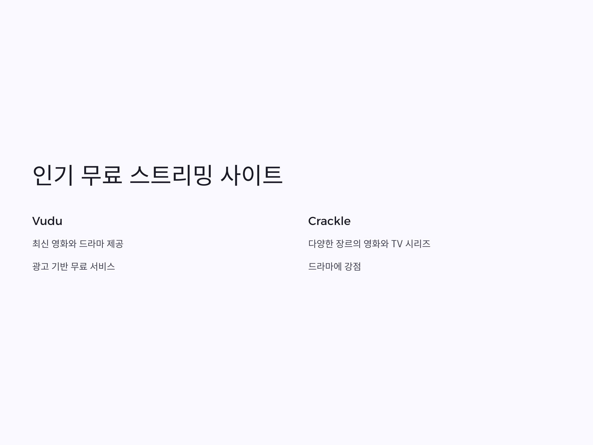 무료 영화 및 드라마 스트리밍 서비스를 제공하는 다른 인기 사이트들도 있습니다. "Vudu"나 "Crackle"은 광고 기반으로 무료 콘텐츠를 제공하는 사이트로, 영화와 드라마를 제한 없이 시청할 수 있습니다. 특히, Vudu는 최신 영화와 드라마를 제공하므로, 최신 작품을 무료로 보고 싶은 사람들에게 추천할 만한 서비스입니다.