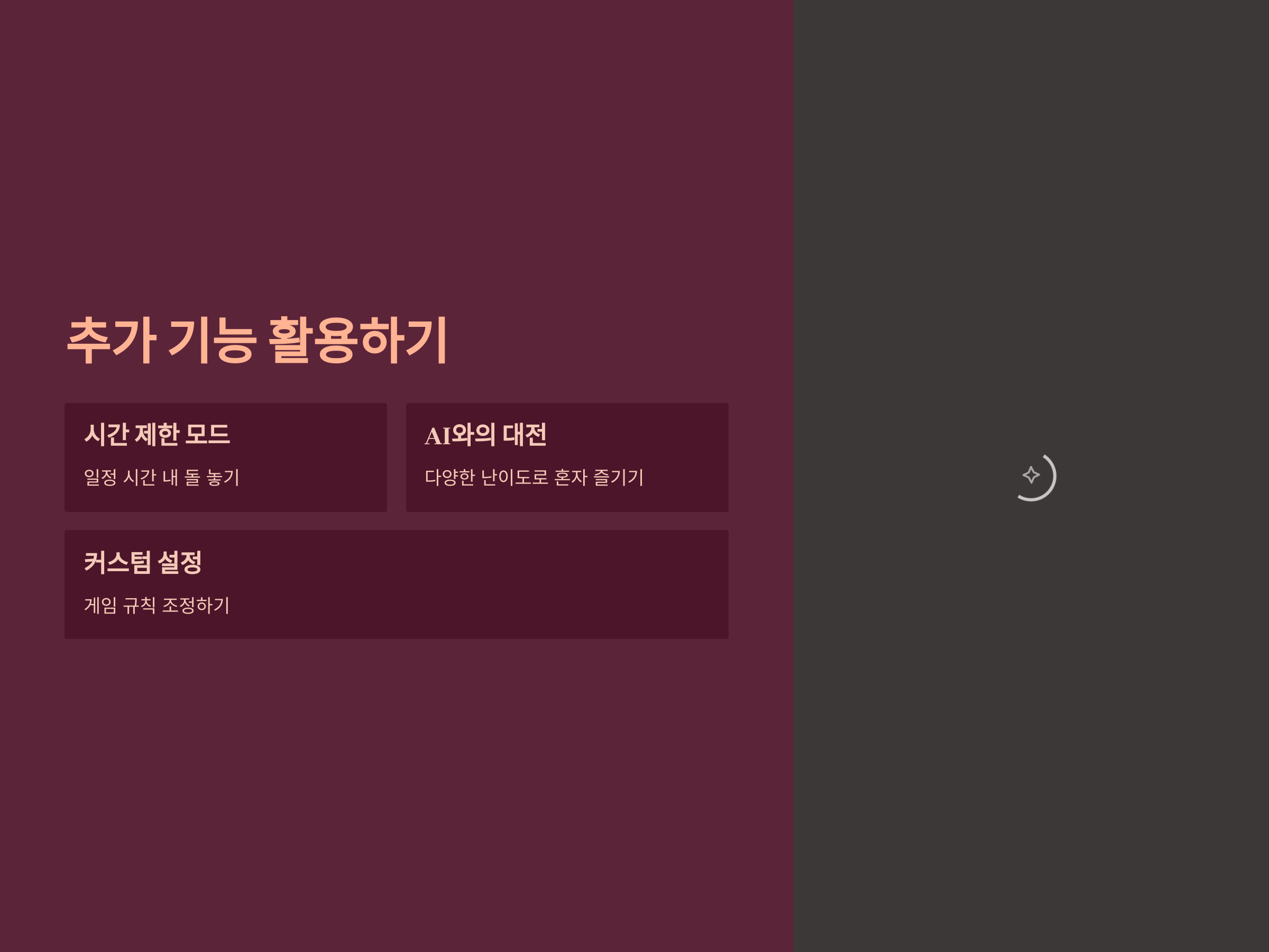 무료 오목 게임은 기본적인 오목 외에도 다양한 추가 기능을 제공합니다. 이 기능들을 잘 활용하면 게임을 더 재밌고 유익하게 즐길 수 있습니다.