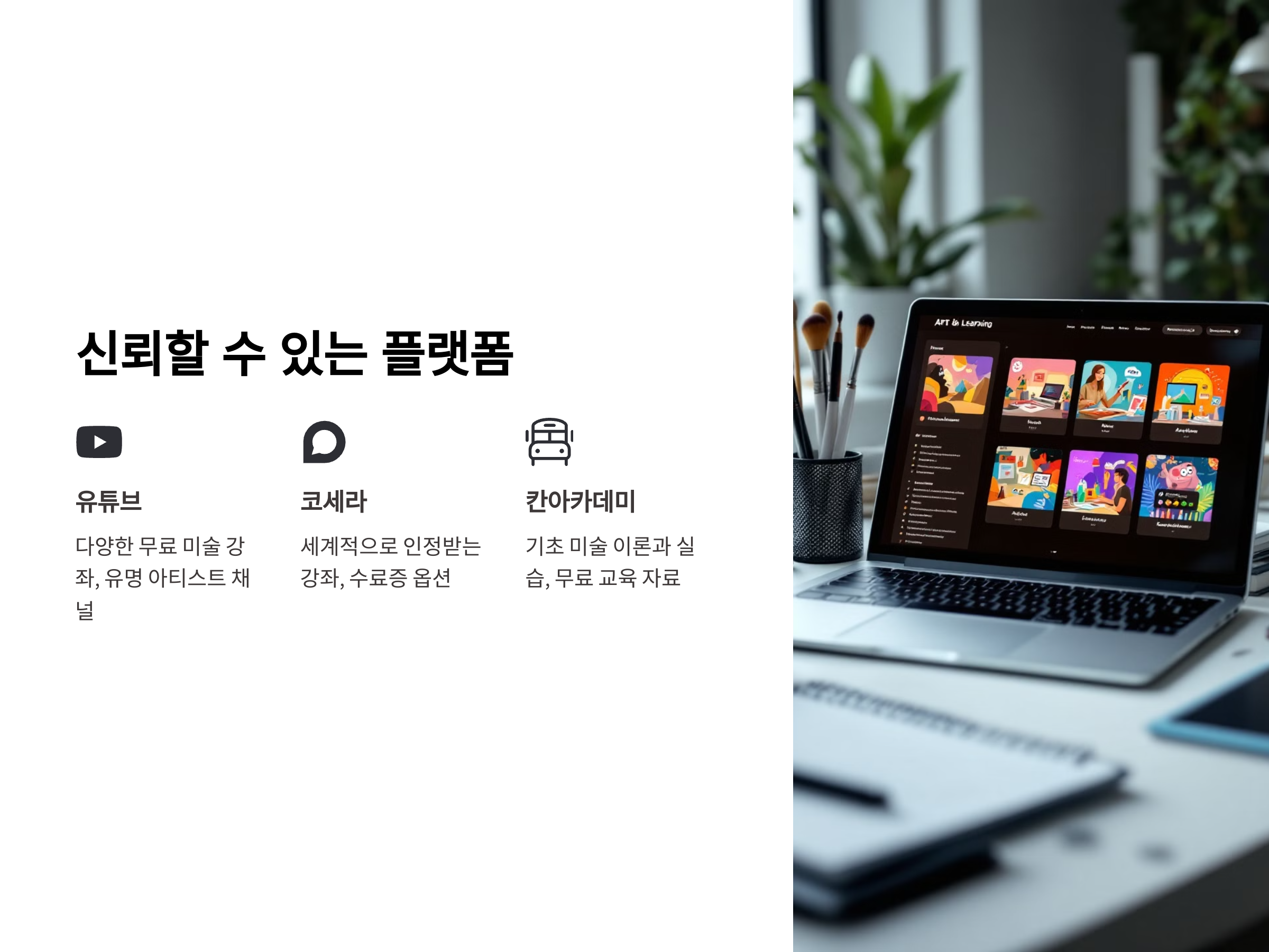 온라인에는 수많은 미술 강좌가 있지만, 그중에서도 신뢰할 수 있는 플랫폼을 선택하는 것이 중요합니다. 아래는 퀄리티 높은 무료 미술 강좌를 제공하는 대표적인 플랫폼들입니다.