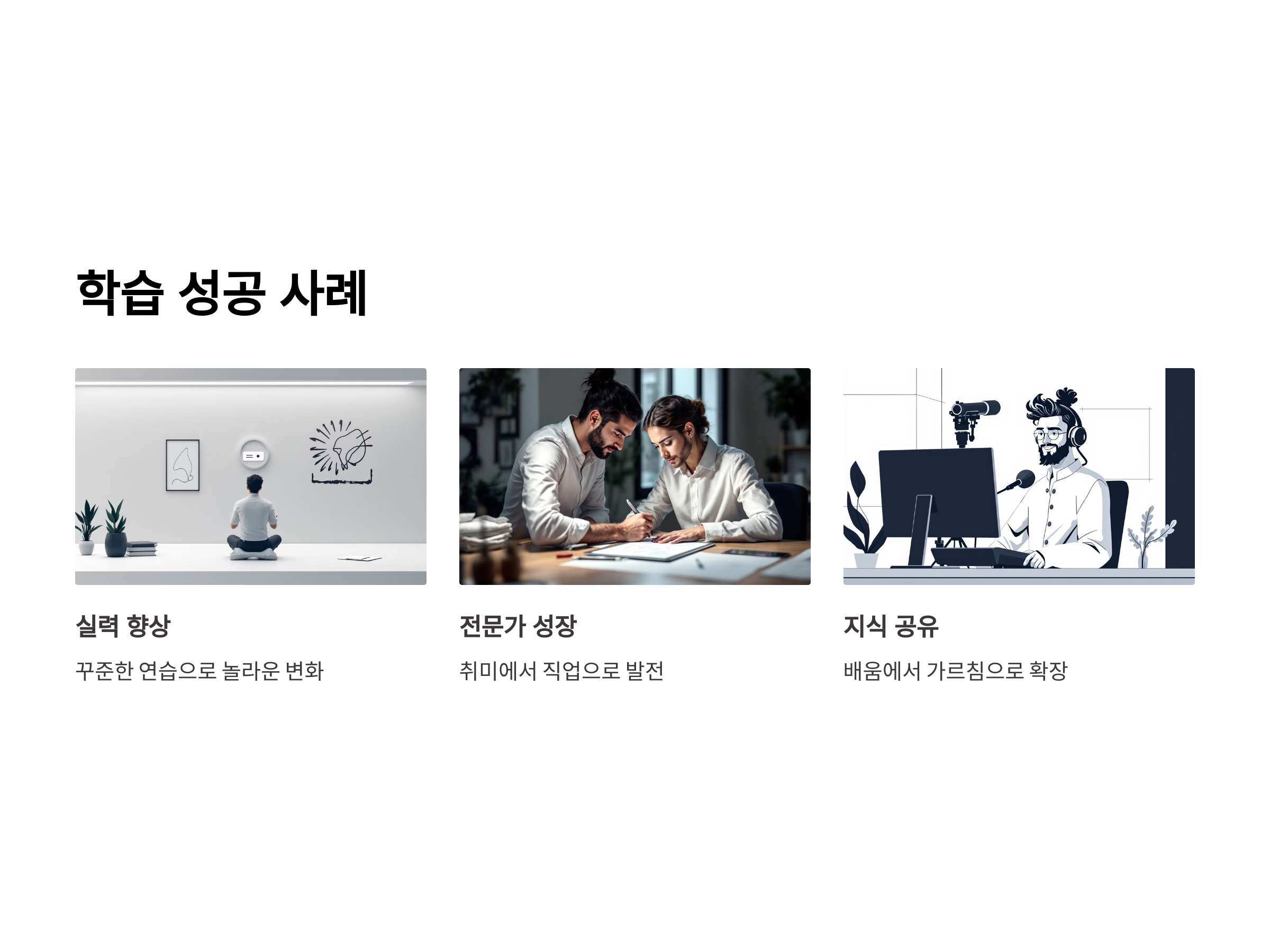 - 자기 속도에 맞춘 학습: 개인 일정에 따라 유연하게 학습할 수 있어 부담이 없습니다.