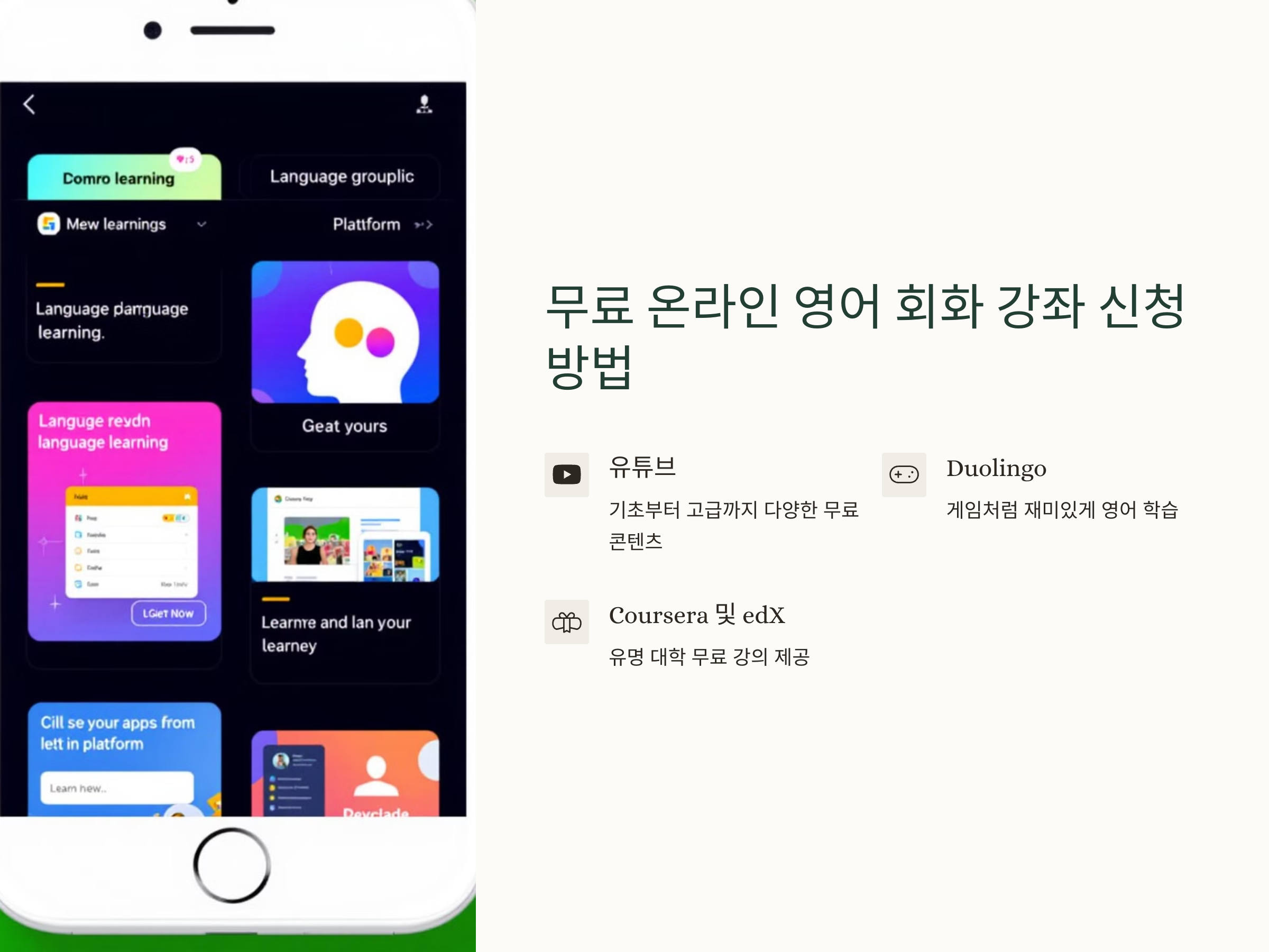 이 두 플랫폼은 전 세계 유명 대학에서 제공하는 무료 강의를 찾을 수 있는 곳입니다. 많은 경우, 영어 회화와 관련된 강좌가 무료로 제공되며, 수료증을 받기 위한 유료 옵션도 있지만 기본적인 학습은 무료로 가능합니다.