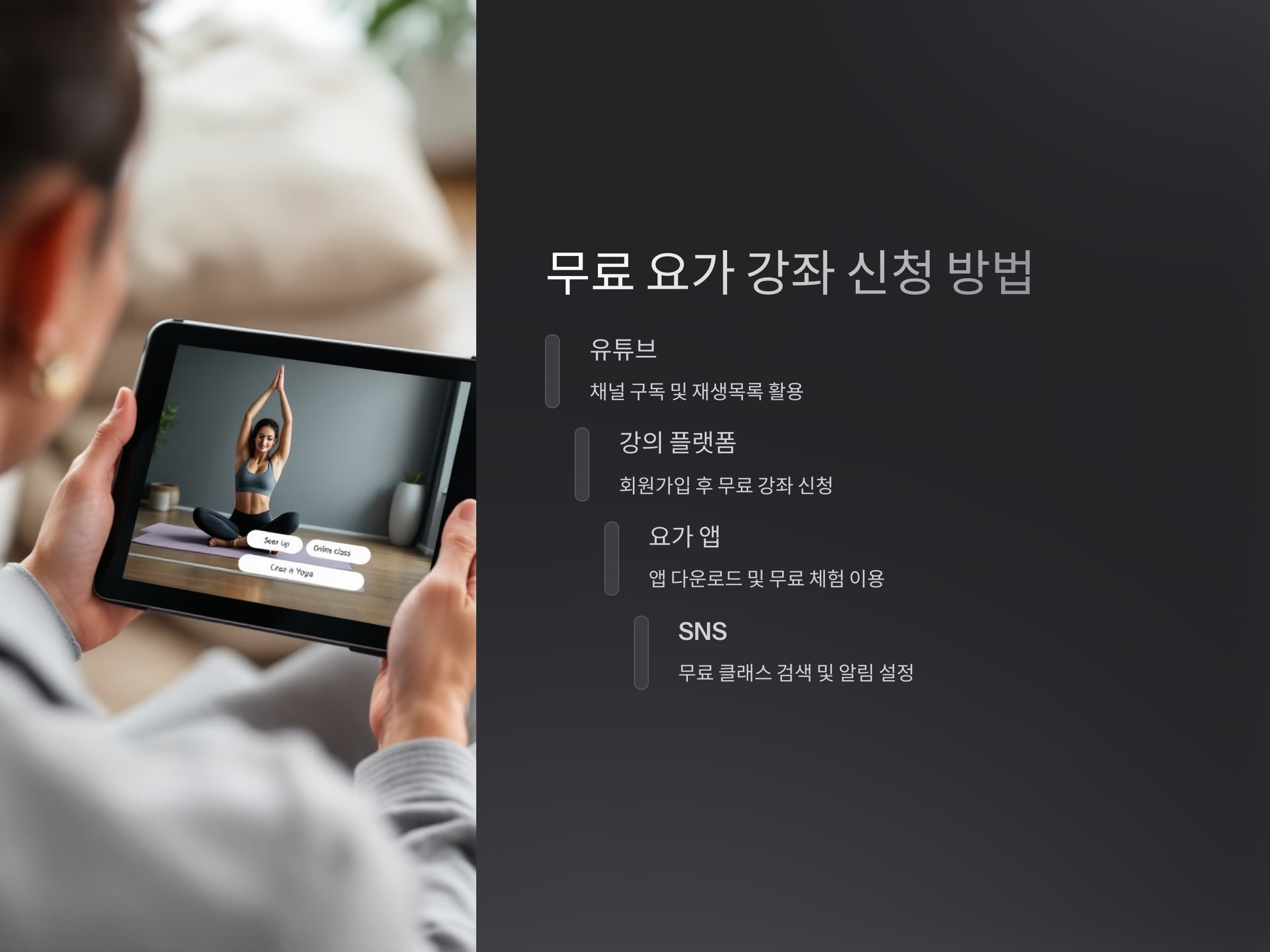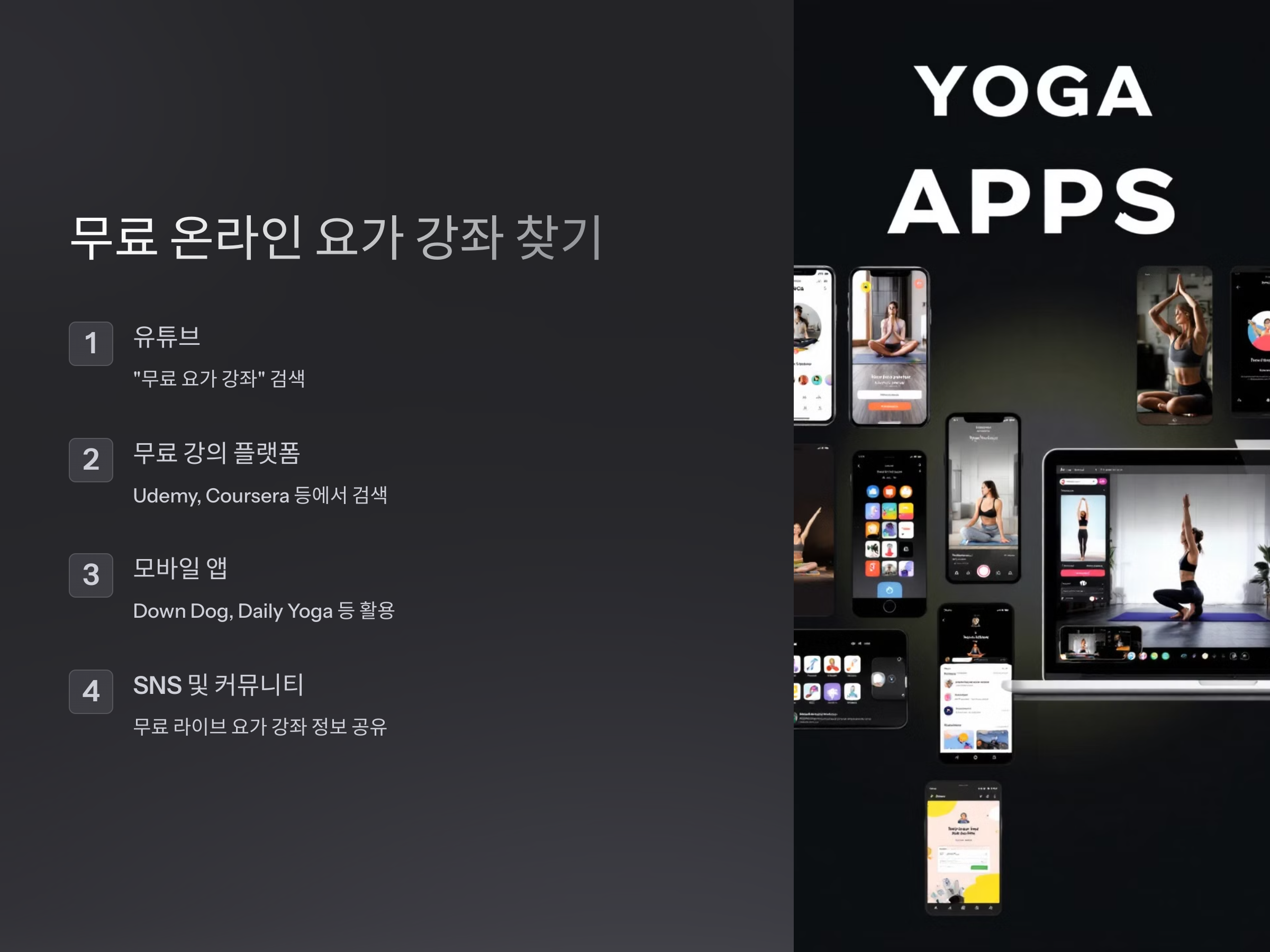 - 요가 관련 커뮤니티에서 무료 강좌 정보를 공유하기도 합니다.