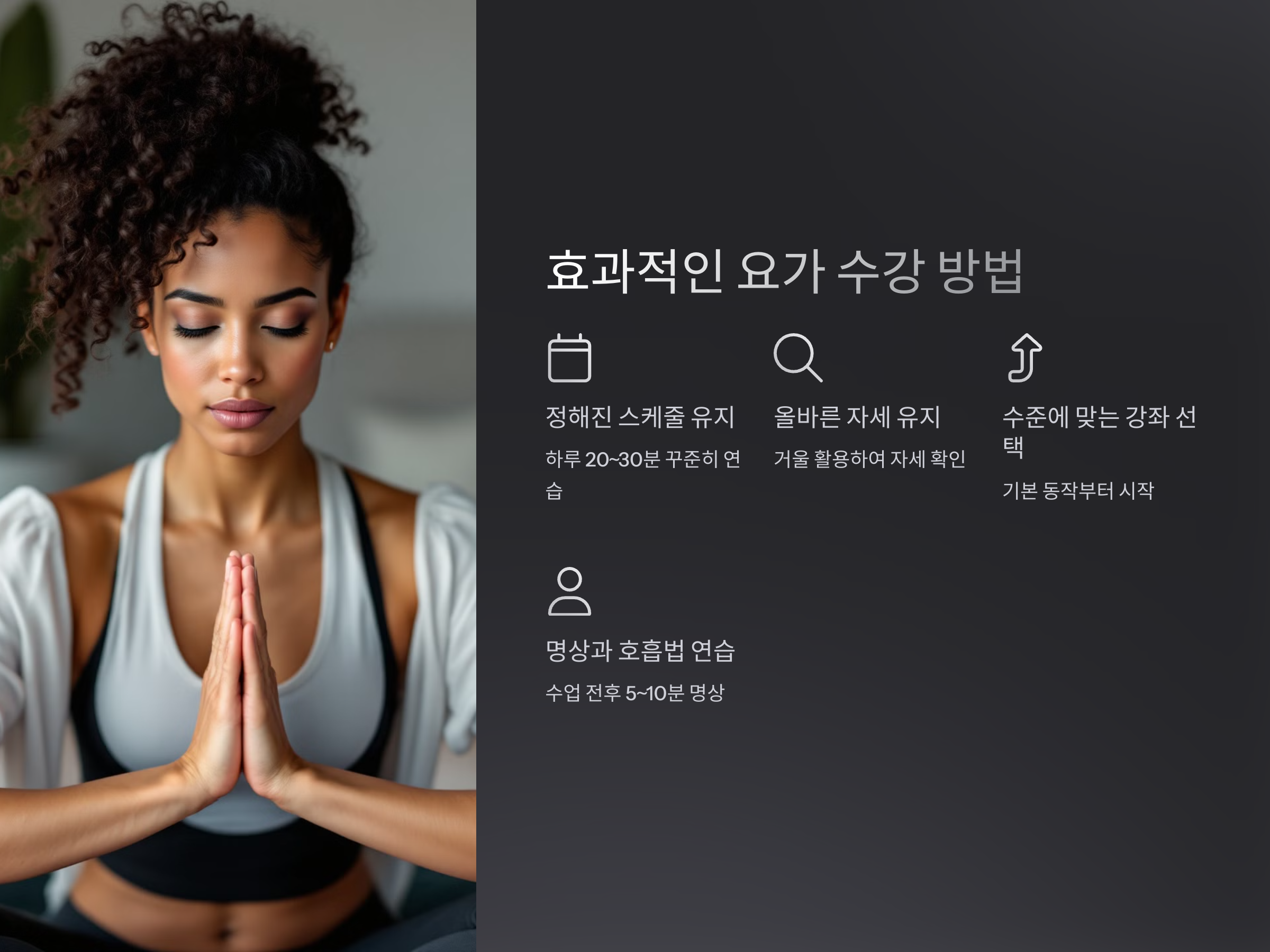 요가를 효과적으로 배우기 위해서는 단순히 영상을 보는 것뿐만 아니라 꾸준히 연습하는 것이 중요합니다.