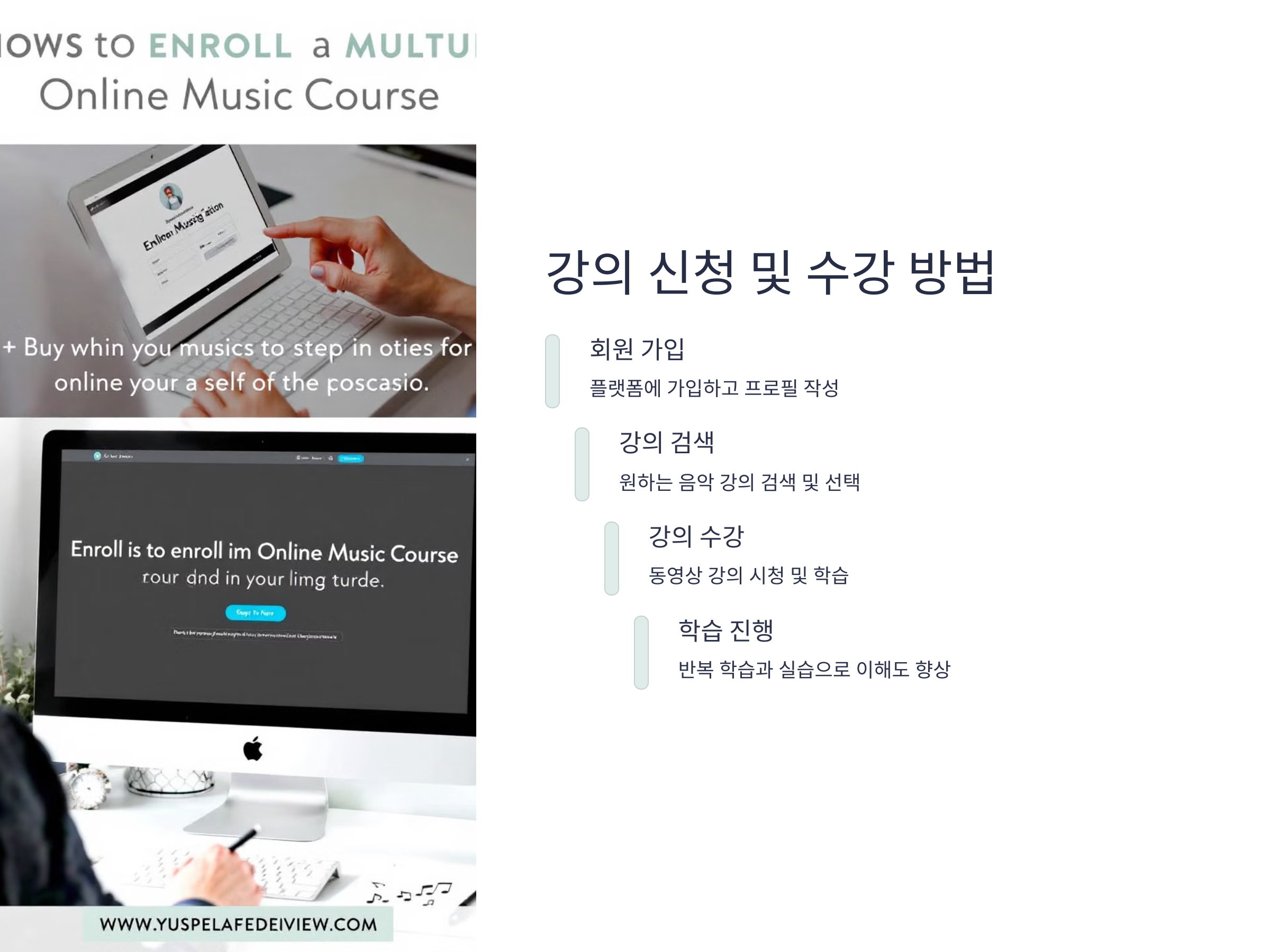 - 회원 가입: 대부분의 무료 온라인 음악 강의는 강의를 듣기 위해 회원 가입이 필요합니다. 각 플랫폼에 가입하고 프로필을 작성하세요.