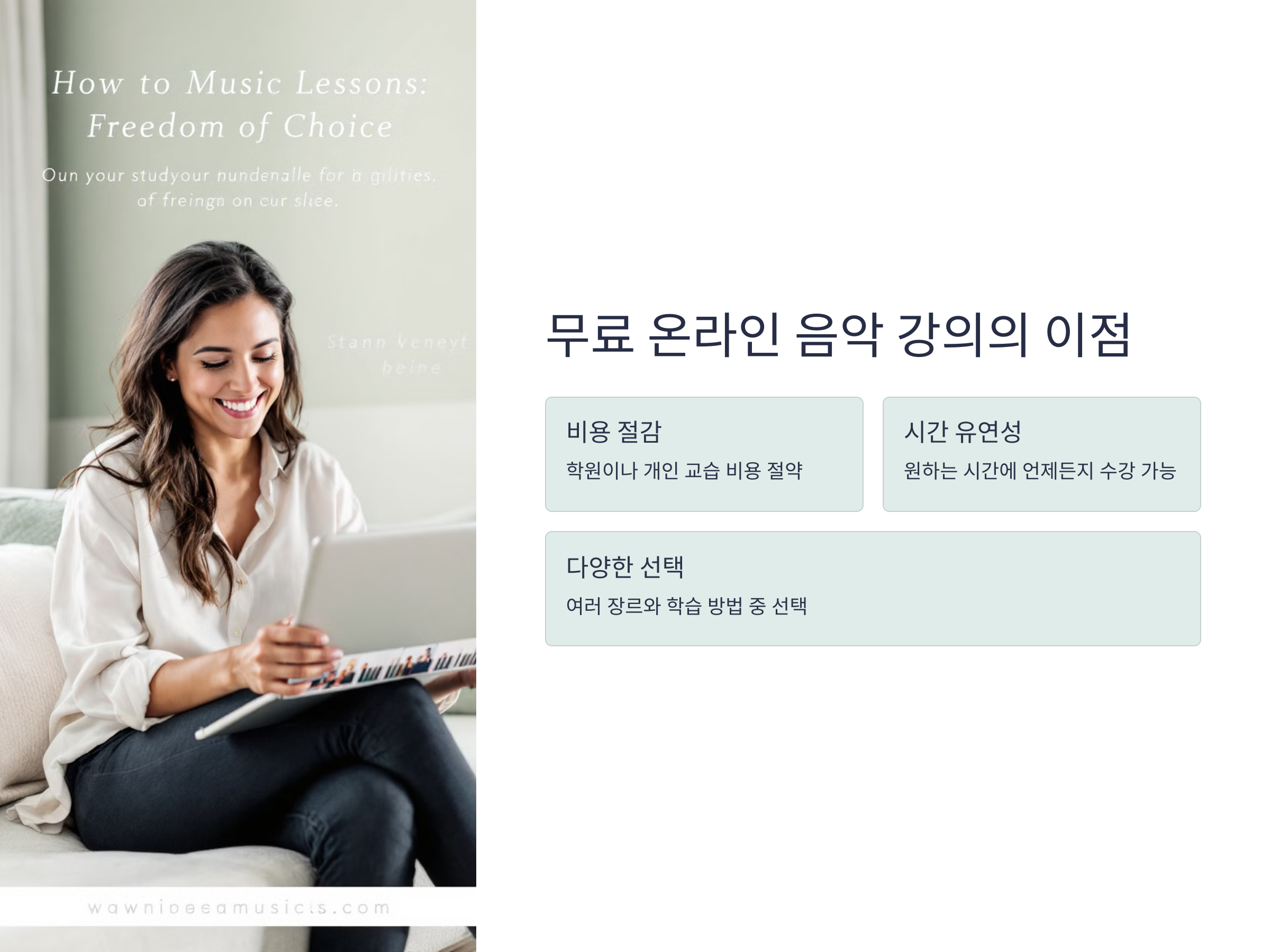 자기 계발을 위해 음악을 배우고 싶은데 비용이나 시간적인 제약으로 망설였던 분들에게 희소식입니다. 인터넷에는 여러 무료 음악 강의 플랫폼이 존재하고, 이러한 강의들을 이용하면 경제적 부담 없이 원하는 음악을 배울 수 있습니다.