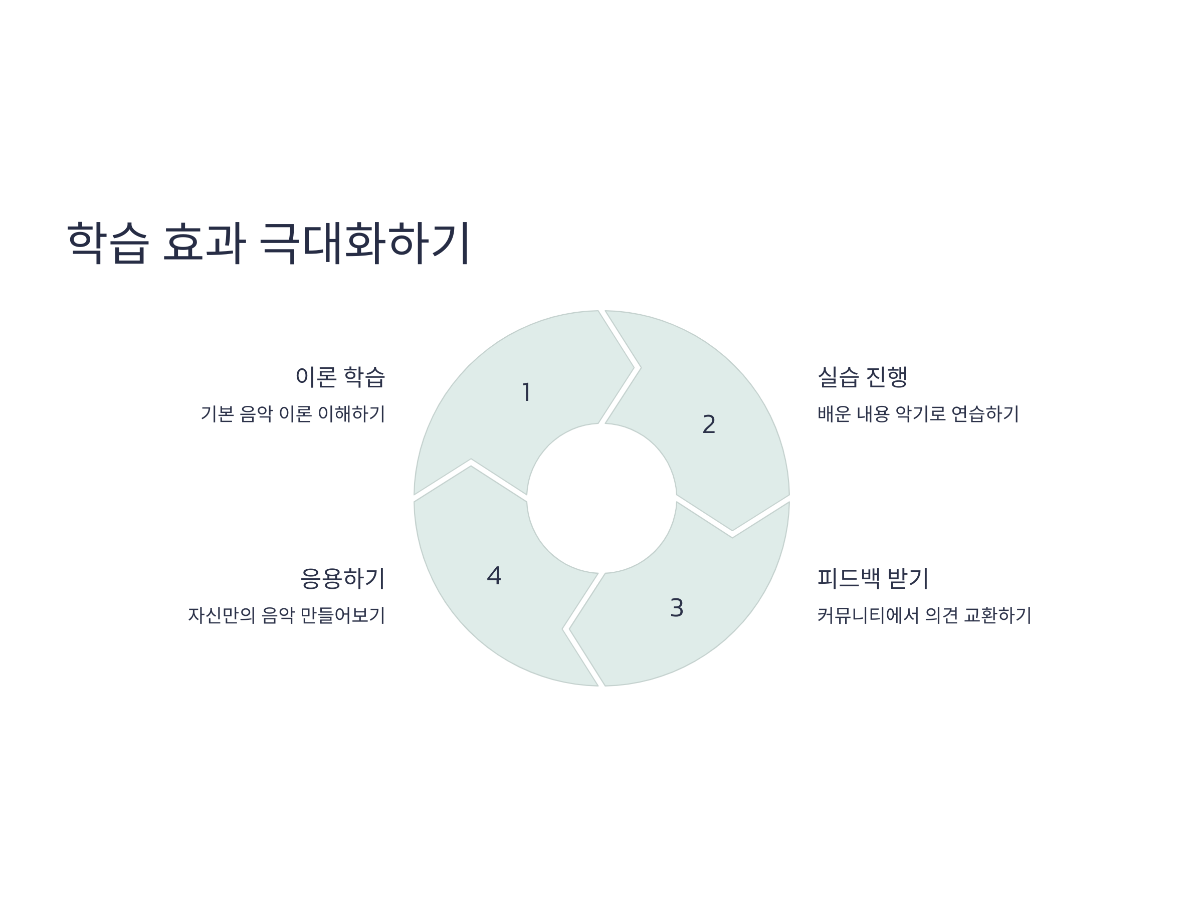 셋째, 실습과 피드백을 적극적으로 활용해야 합니다. 이론적인 지식도 중요하지만, 악기나 작곡을 배우는 과정에서는 실습이 필수입니다. 가능하면 다른 사람들과 함께 실습을 하거나, 피드백을 받을 수 있는 기회를 찾아보세요.