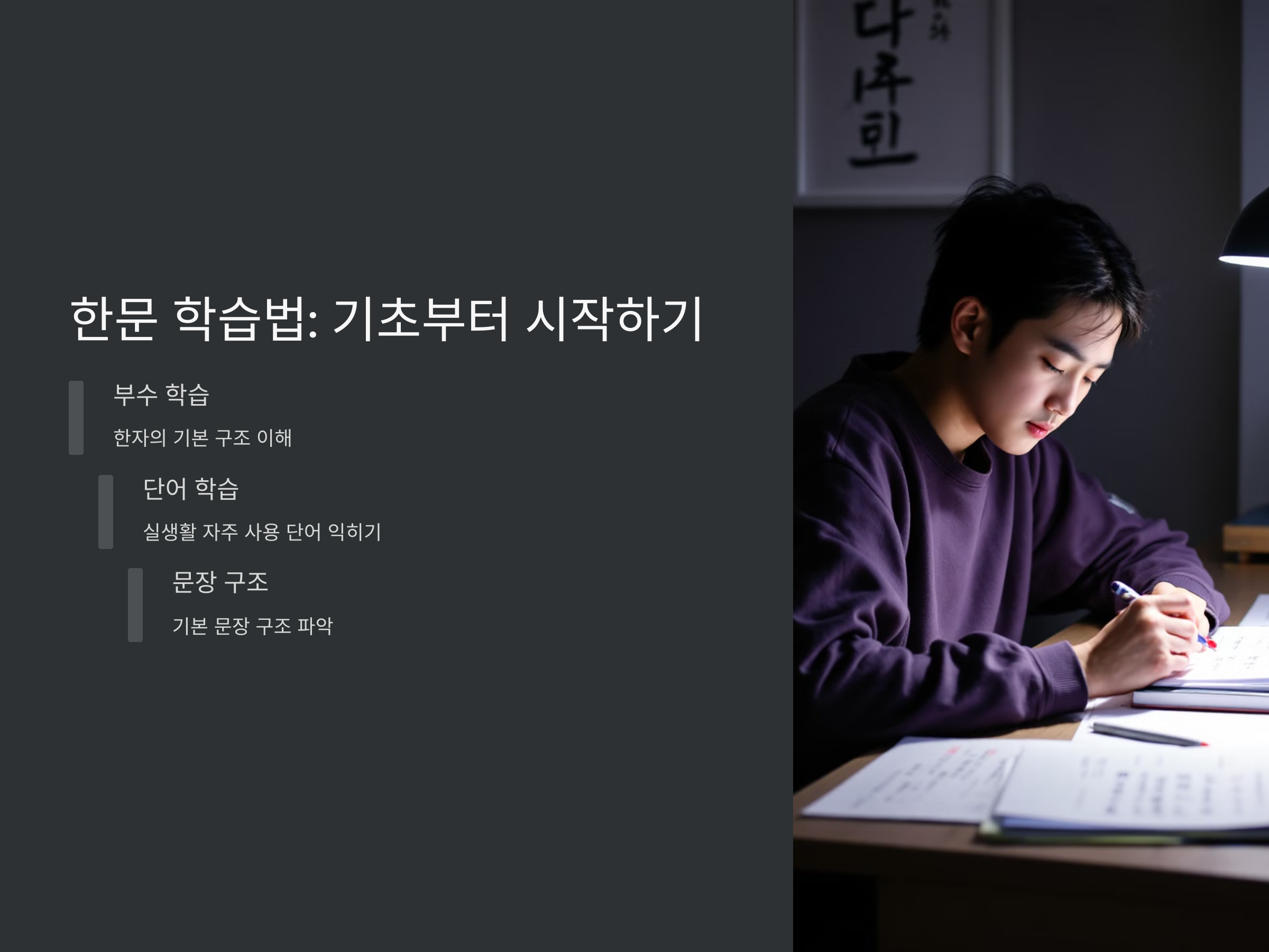 한문을 효율적으로 배우기 위해서는 체계적인 학습이 중요합니다. 여기서는 한문을 공부할 때 유용한 학습법을 소개합니다.