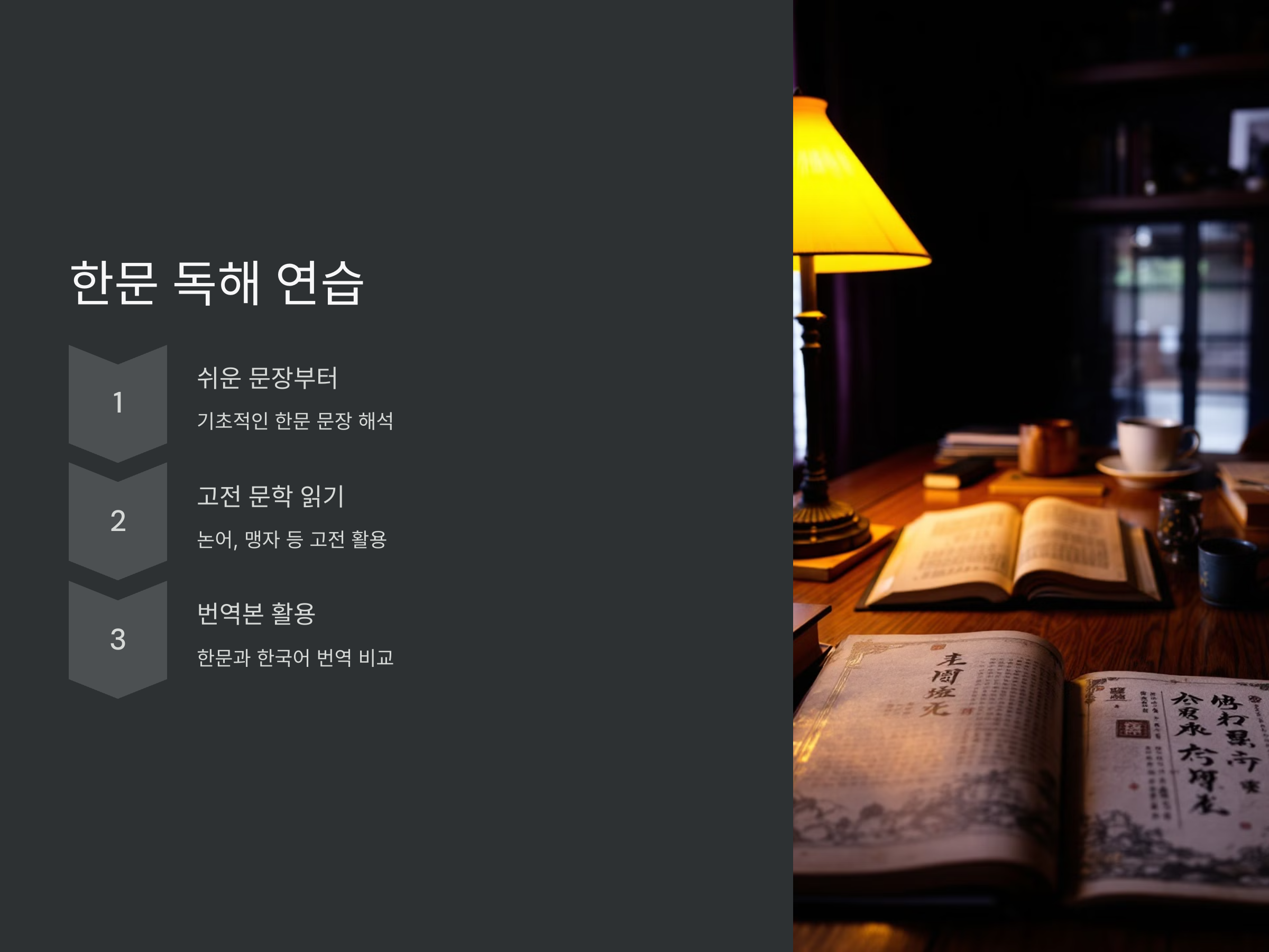한문 독해는 반복적인 연습이 중요합니다. 고전 문학을 읽거나, 쉬운 문장을 먼저 연습하고, 점차 난이도를 높여가면서 학습해보세요.