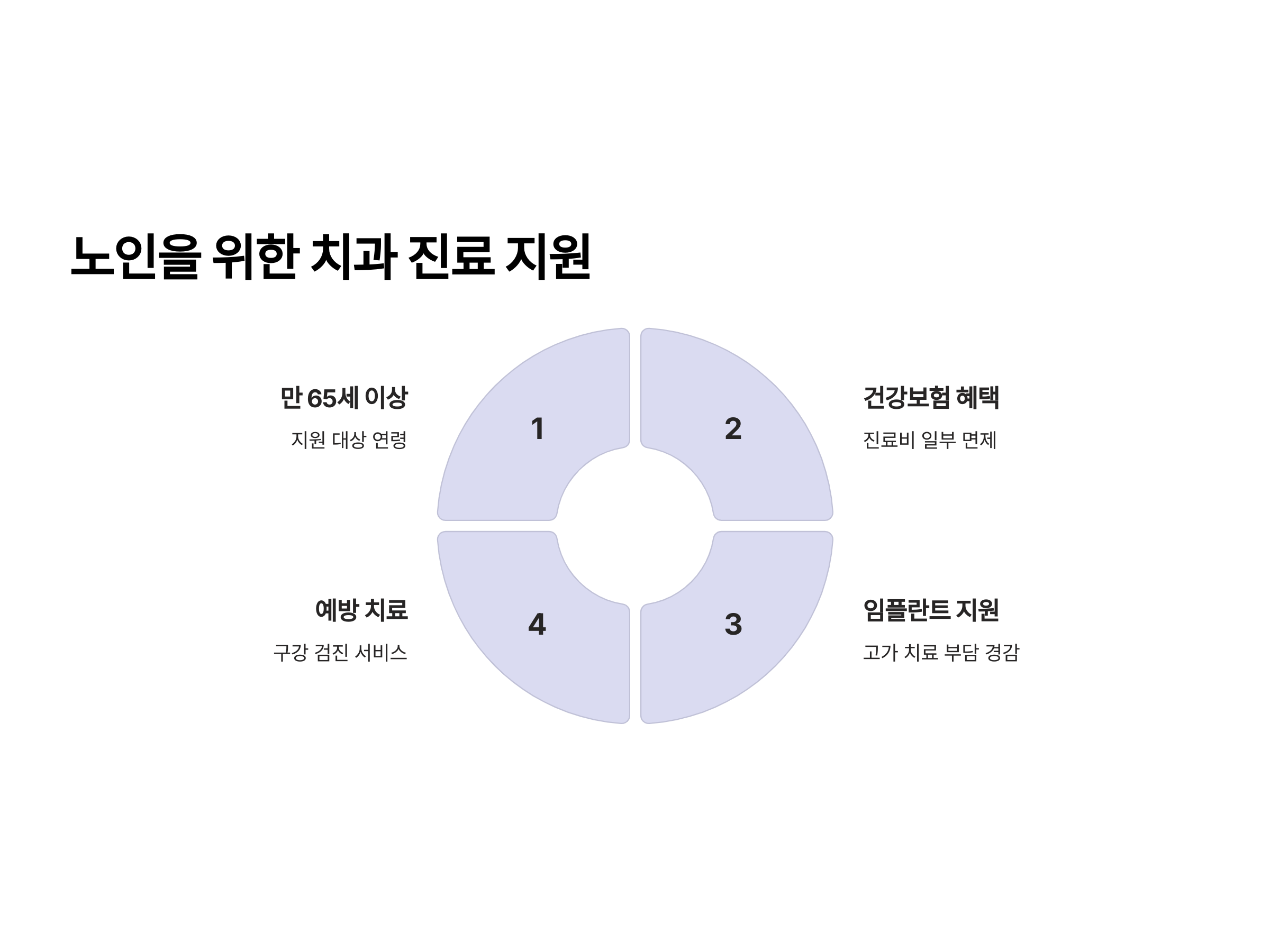 노인층을 위한 치과 진료 지원은 매우 중요한 정책 중 하나입니다. 나이가 들어감에 따라 치아 건강이 나빠질 수 있는데, 이때 치과 치료를 받지 못하면 구강 건강에 큰 영향을 미칠 수 있습니다. 특히, 치아 교정이나 임플란트 치료는 상당한 비용이 들기 때문에 경제적인 부담이 될 수 있습니다.