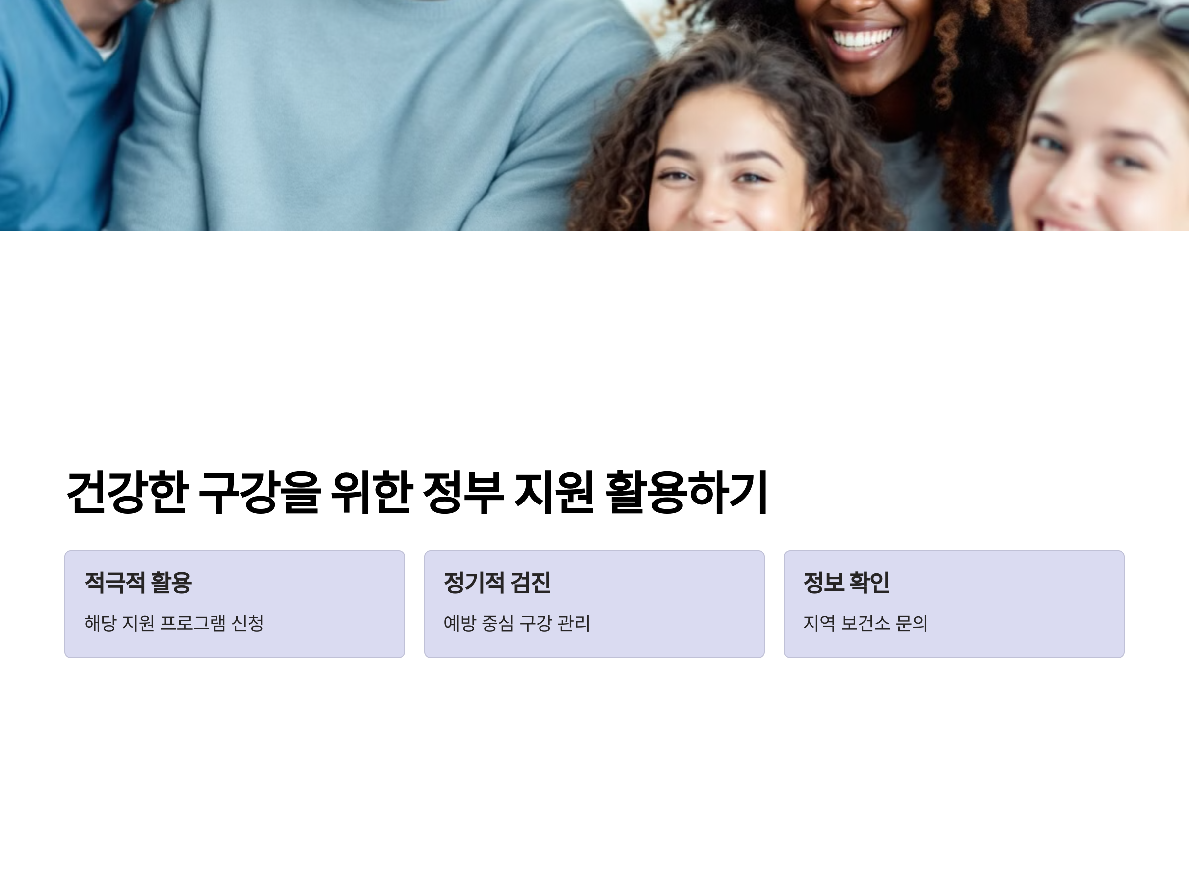 무료 치과 진료를 받을 수 있는 정부 지원제도는 경제적인 이유로 치과 치료를 미루고 있는 많은 사람들에게 큰 도움이 될 수 있습니다. 저소득층, 노인, 아동, 장애인 등을 대상으로 다양한 치과 진료 지원 프로그램이 운영되고 있으며, 이를 통해 누구나 건강한 구강을 유지할 수 있도록 돕고 있습니다. 지원 대상에 해당된다면, 지역 보건소나 지정된 치과병원에서 제공하는 혜택을 적극적으로 이용해 보세요. 치아 건강을 지키는 것이 중요한 만큼, 이 제도를 잘 활용하여 보다 건강한 삶을 유지하시길 바랍니다.