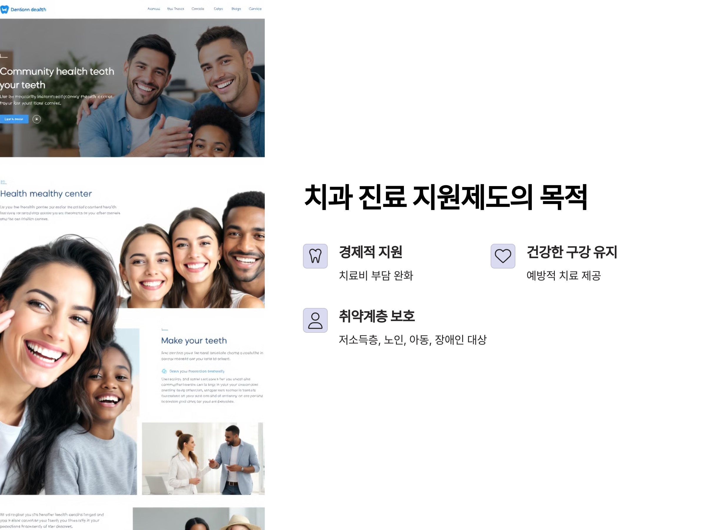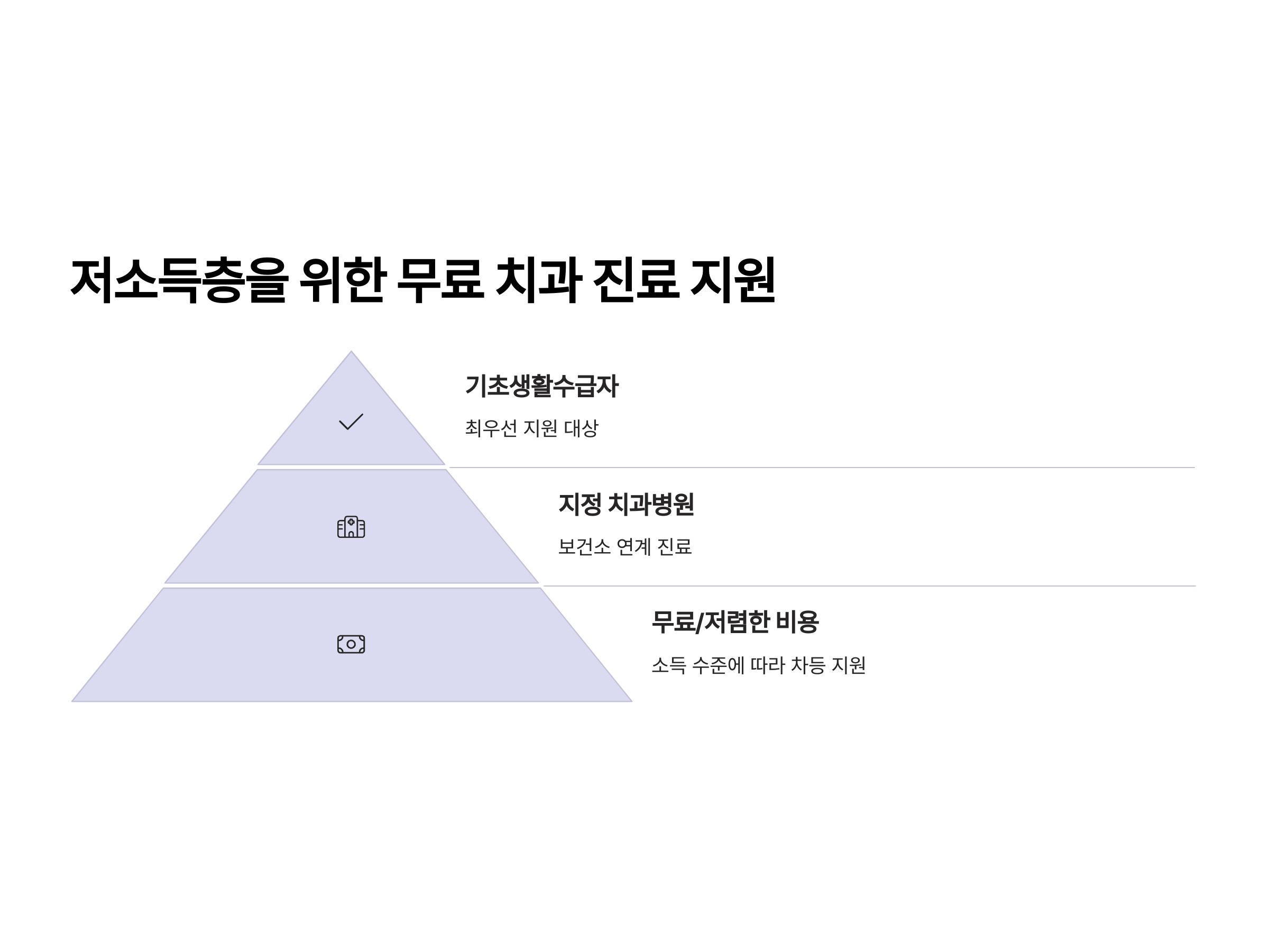 저소득층 가구에 대한 치과 진료 지원은 매우 중요한 분야입니다. 경제적으로 어려운 상황에서 치과 치료를 받는 것이 불가능한 사람들을 위해, 정부는 무료 또는 저렴한 비용으로 진료를 받을 수 있는 제도를 운영하고 있습니다. 주요 지원 대상은 기초생활수급자, 차상위계층 등입니다.