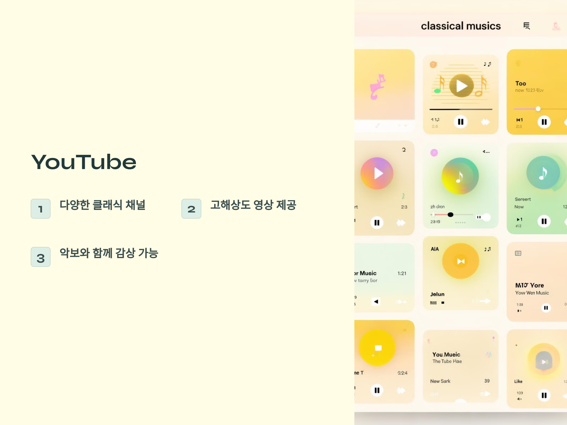 - 추천 이유: 다양한 클래식 음악 채널, 고해상도 영상 제공