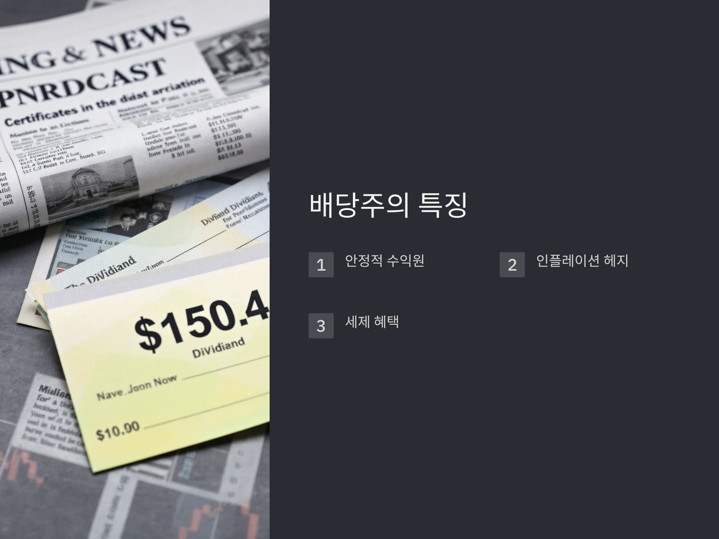 - 안정적인 수익원: 많은 기업들이 꾸준한 이익을 바탕으로 배당금을 지급합니다. 특히, 대형 기업이나 실적이 좋은 기업은 지속적인 배당을 약속합니다.