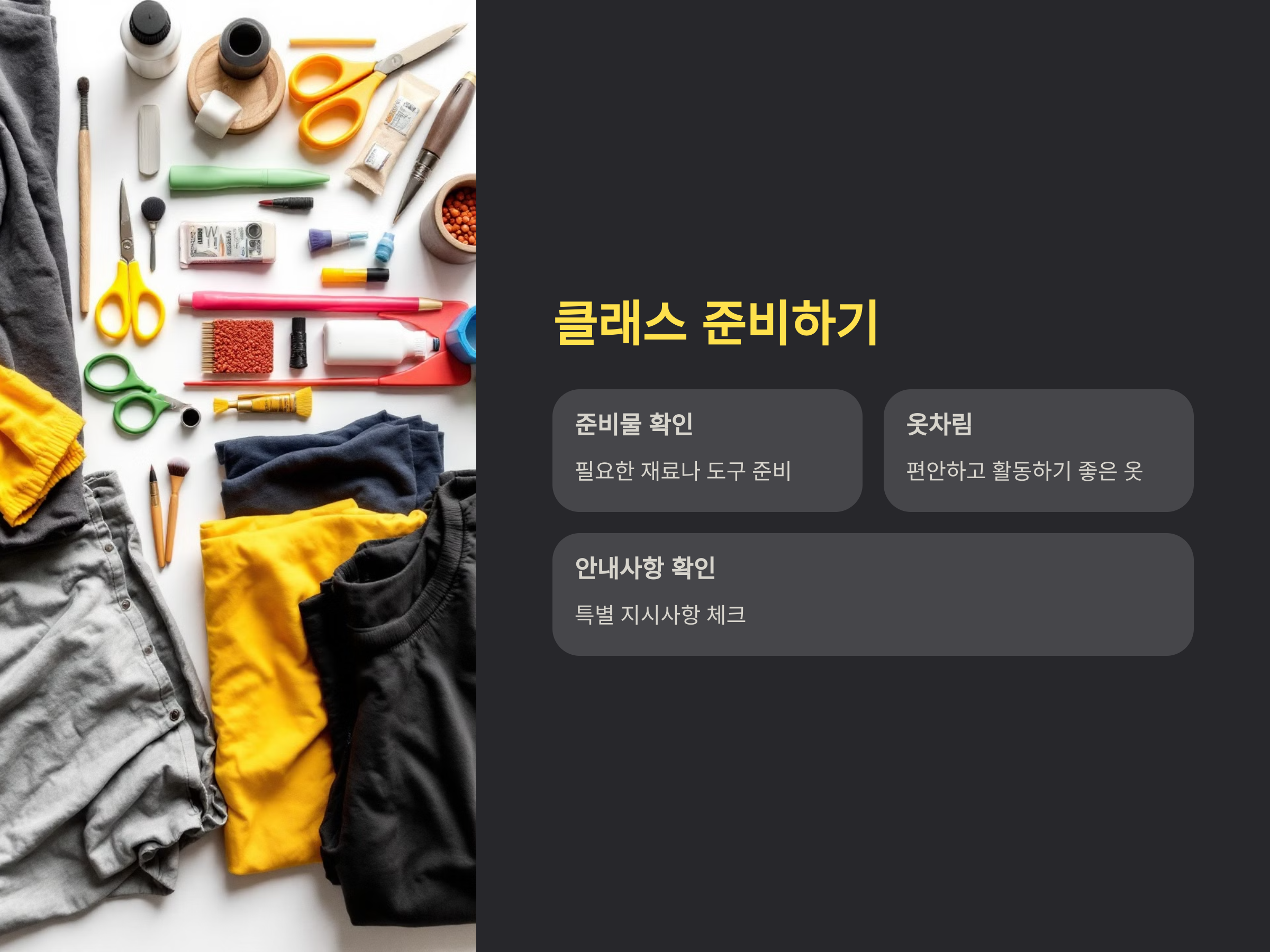 클래스 준비물 확인 및 참여