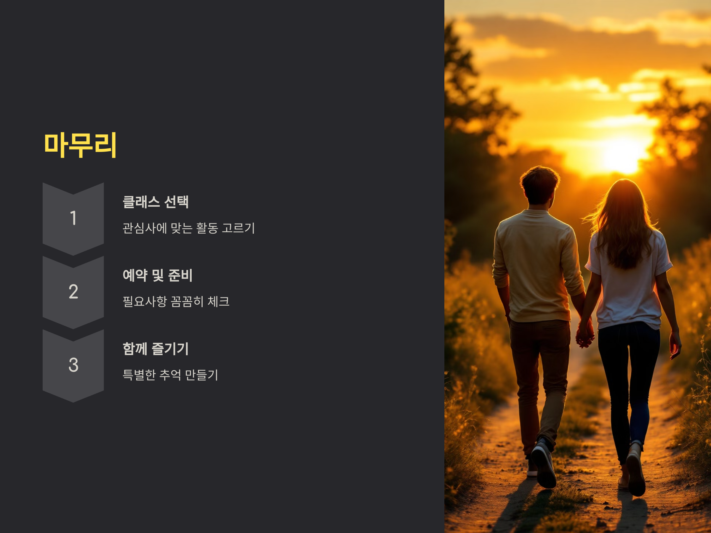 이제, 배우자와 함께 이 특별한 경험을 시작하기 위한 방법을 알아보겠습니다.
