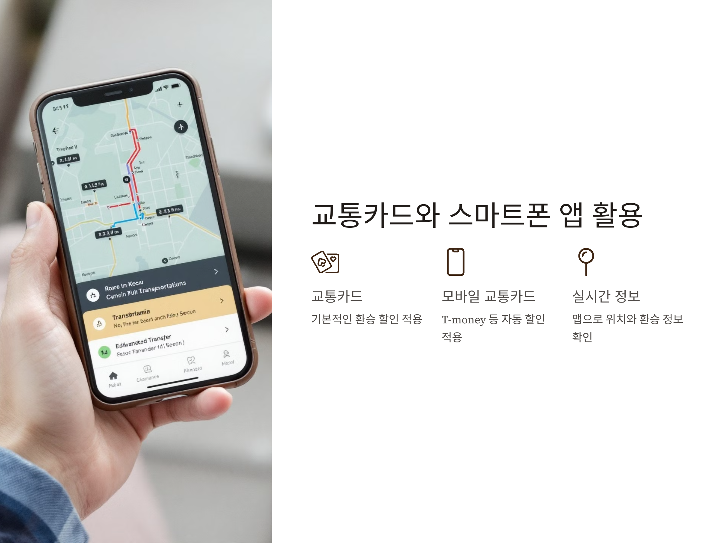 스마트폰 앱을 이용하면, 교통수단의 위치와 환승 정보를 실시간으로 확인할 수 있어, 이동 경로를 계획하는 데도 큰 도움이 됩니다. 또한, 다양한 할인 혜택을 제공하는 프로모션이 있을 때 이를 적극적으로 활용할 수 있습니다.